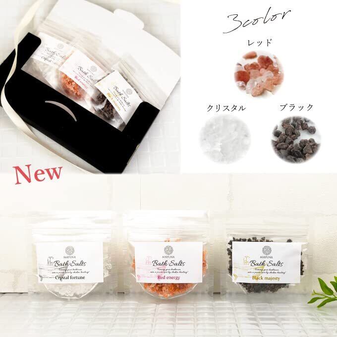 「MAYUNA バスソルト」は、厳選されたヒマラヤ岩塩を使用した高級入浴剤で、心身を癒すための特別なアイテムです。3色の美しいカラーが揃ったこのセットは、どれを選んでもリラックスできる香りと効果を体感できます。日々の疲れを癒し、安らぎのひとときをお過ごしください。