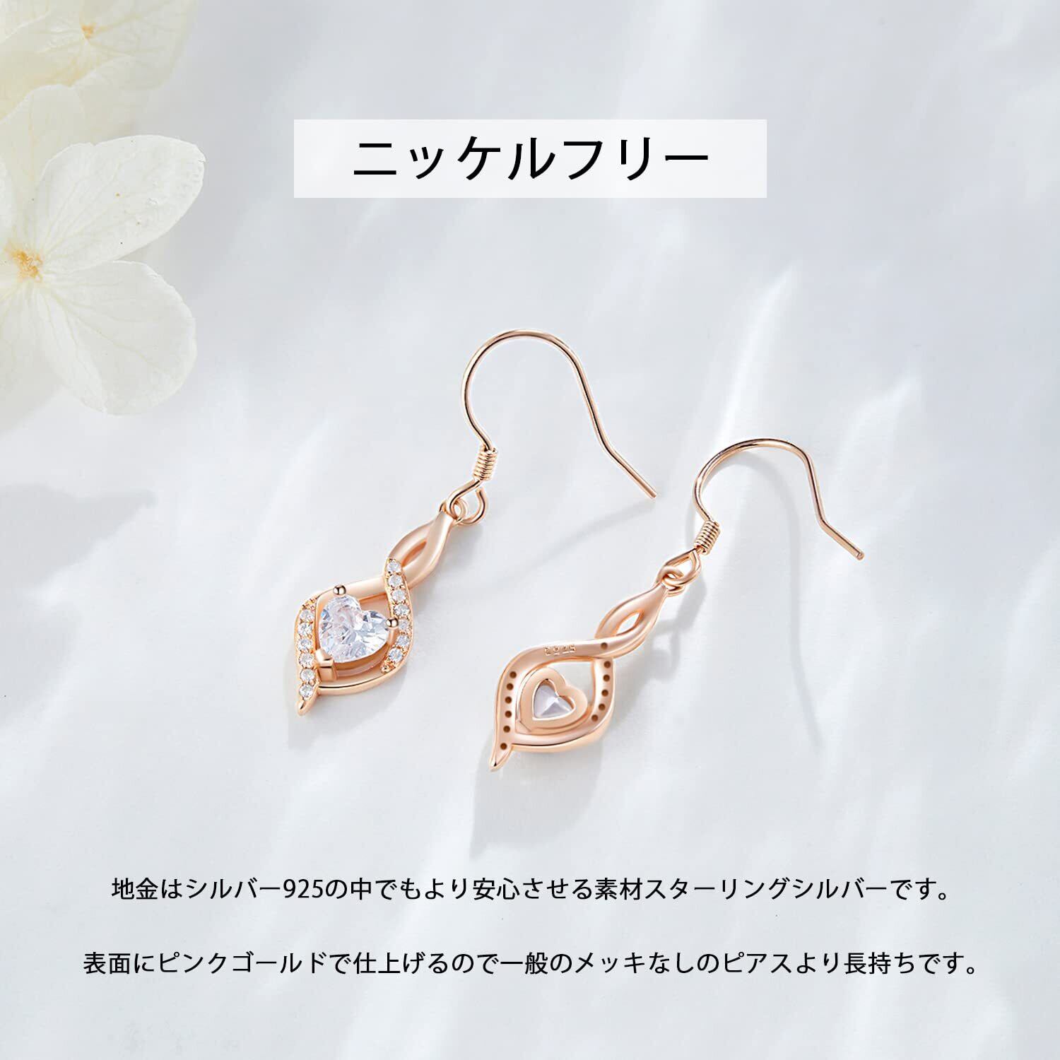 【おしゃれなピアス】毎日付けても飽きがこないおしゃれなフックピアスです。シンプルのデザインにハート型のキュービックジルコニアで耳元をより彩にします。それに、動きに連れられてキラキラ輝きながら揺れるピアスが大人可愛さをアピールです。