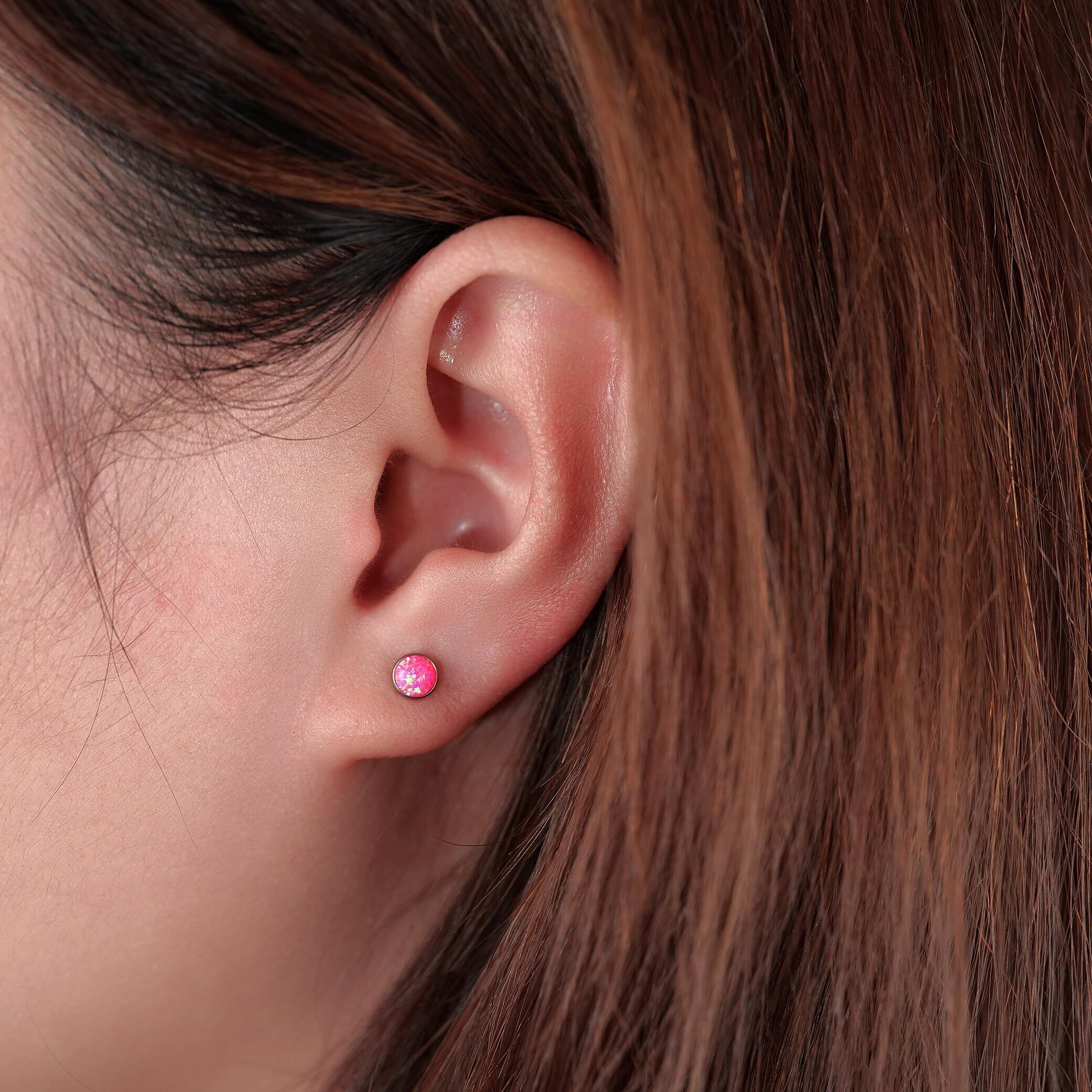 Limerencia 純チタン ピアス オパール スタッドピアス 5-6 MM 誕生石 10月 金属アレルギー対応 クリスマス 誕生日 プレゼント 上品 女性 ギフト