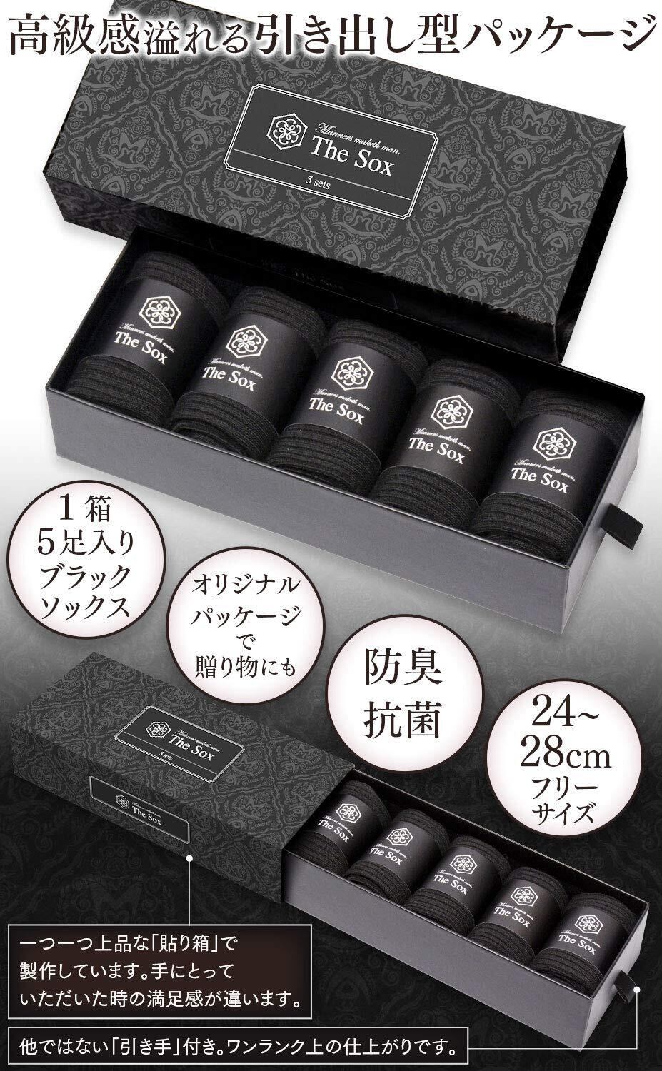 [Manners maketh man.] The SOX ビジネスソックス 黒 特製パッケージ プレゼント ギフト にも 抗菌防臭 吸汗速乾 フリーサイズ(24-28㎝) (1, free_size)