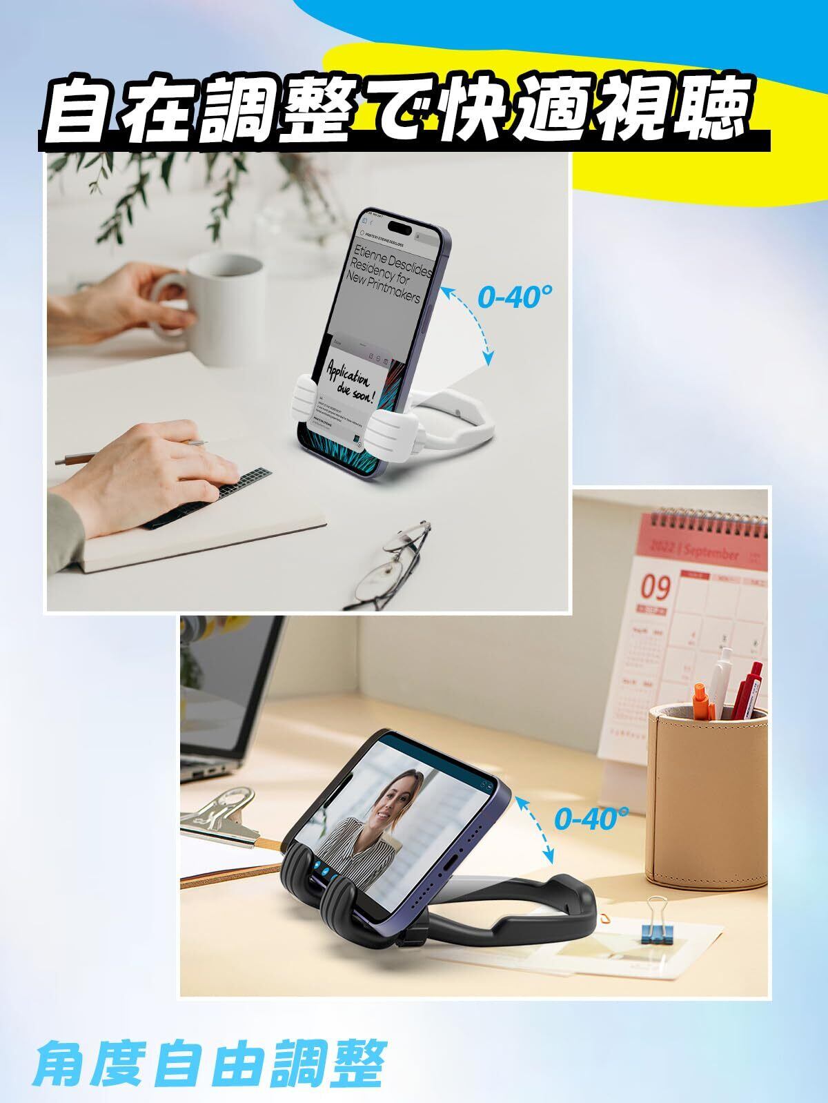 軽量小型で持ち運び便利: わずか40gの超軽量&薄型設計で、バッグに入れても嵩張らないコンパクトなスマホスタンド おしゃれ。携帯スタンド 卓上として、カフェ、図書館、ジム、会議室、飛行機などあらゆる屋内外シーンで活躍。リモートワーク、勉強、読書、ドラマ鑑賞など日常の様々なニーズにも対応し、どこでも便携に使えるスマホスタンド。