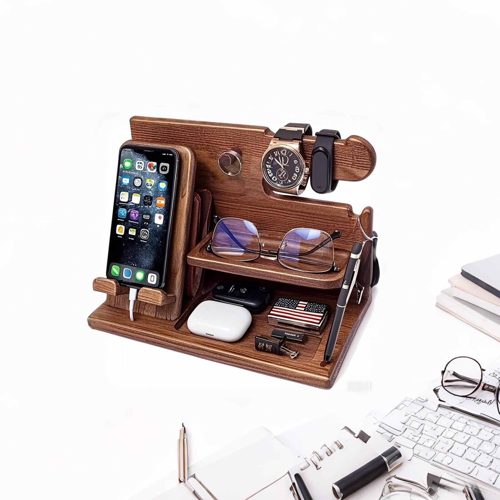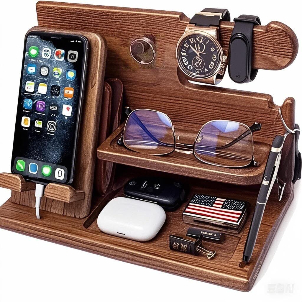 ◆【誕生日プレゼント 男性 木製スマホスタンド 父の日プレゼント デスクオーガナイザー スタンド 腕時計 小物収納】◆
