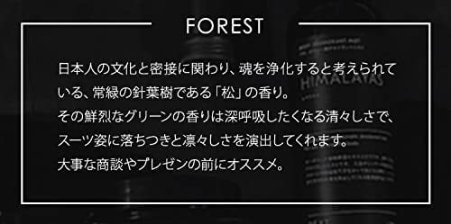 その鮮烈なグリーンの香りは深呼吸したくなる清々しさで、スーツ姿に落ちつきと凛々しさを演出してくれます。