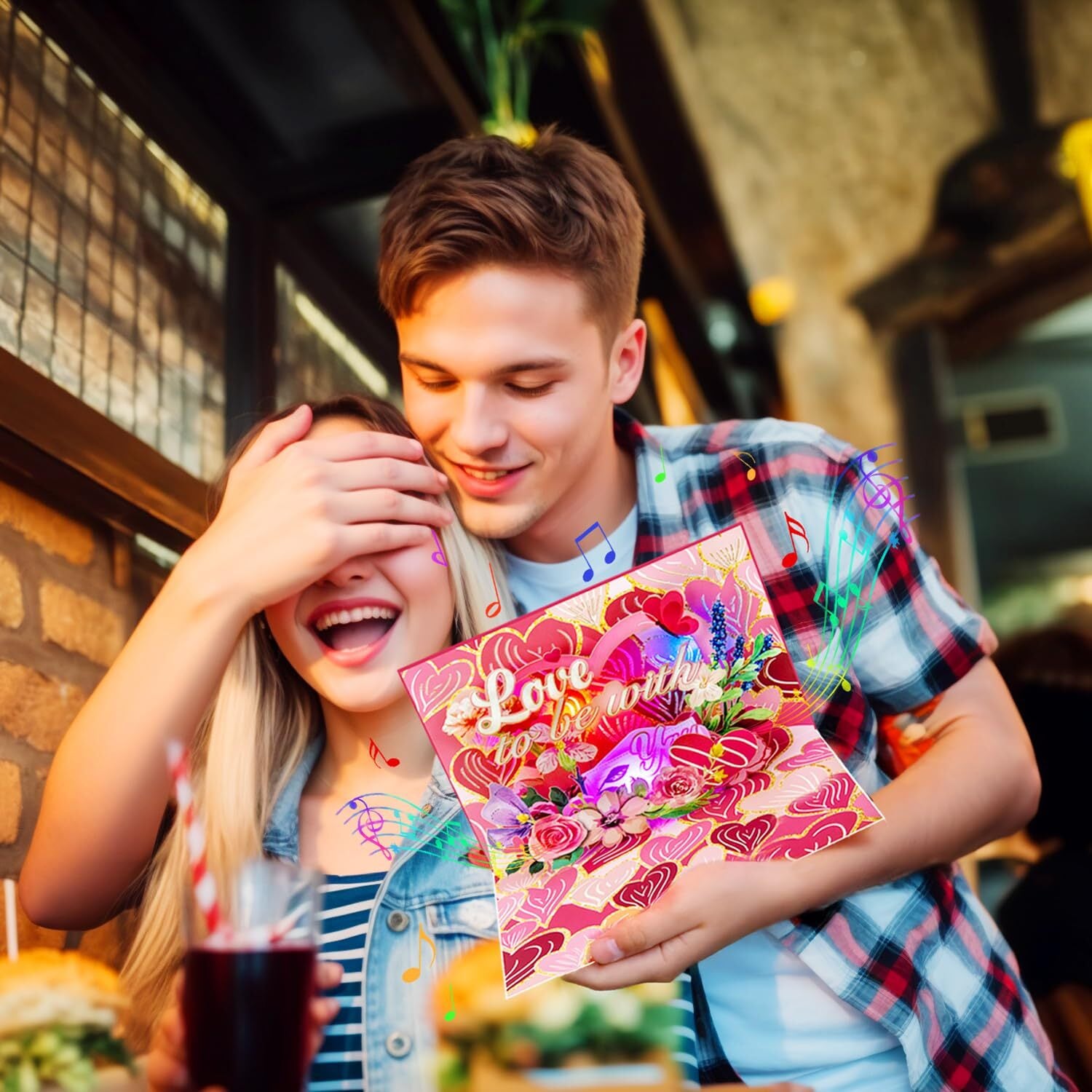 音楽機能付きでロマンチック: カードを開くとロマンチックなメロディーが流れる仕組みで、結婚記念日、バレンタインデー、誕生日のお祝いに最適です。