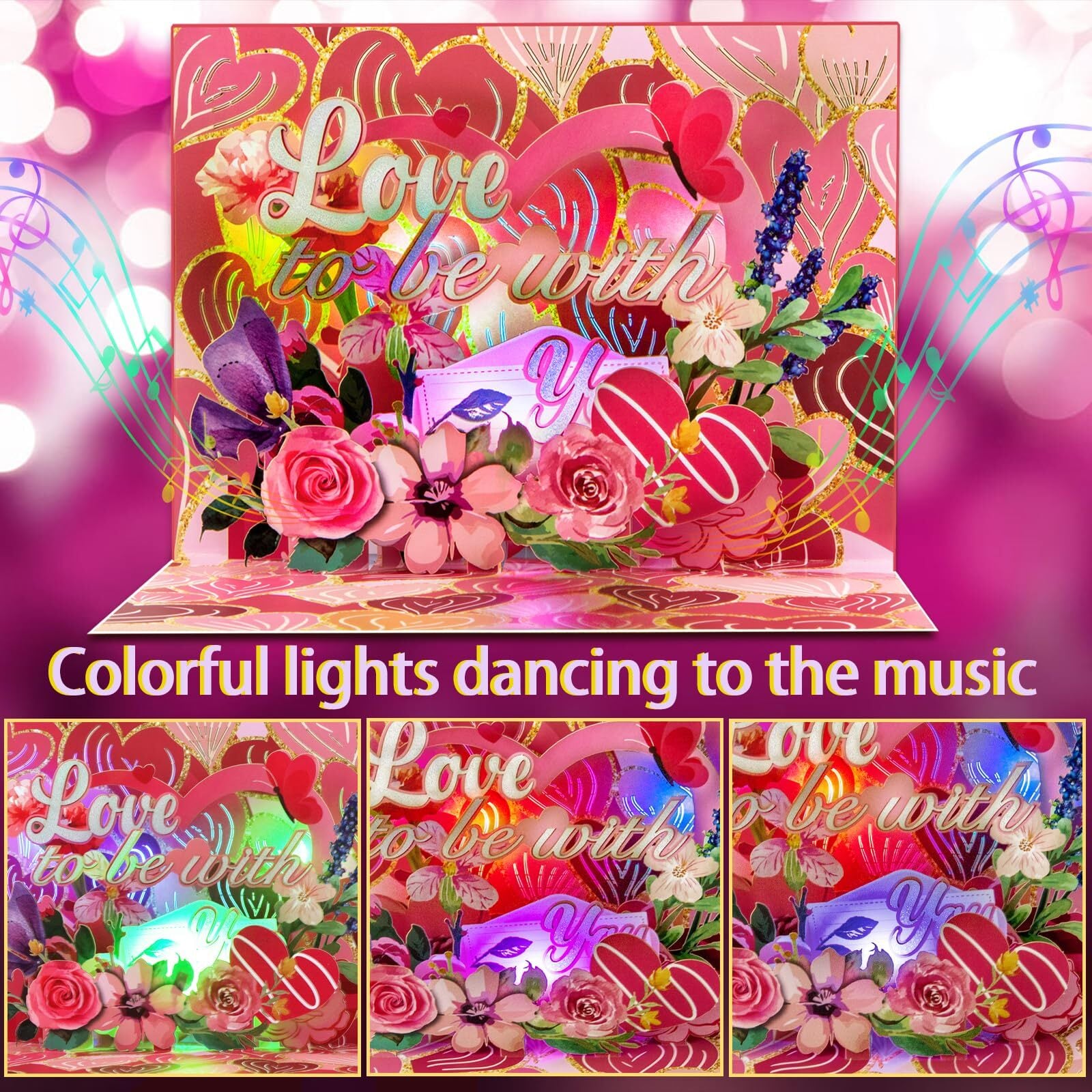 [ポップアップカード, バレンタインデー, ギフト, 音楽付きカード, ロマンチック, LEDライト, プレゼント, 記念日]