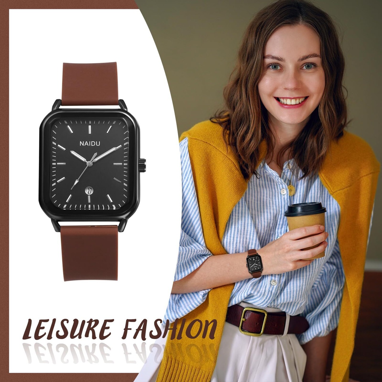 スクエア 腕時計 シリコン カレンダー 防水: アナログ ゴムベルト クォーツ ウオッチ カジュアル おしゃれ 茶色 メンズ レディーズ ファション アクセサリー - 誕生日 記念日 クリスマス バレンタインデー 彼氏プレゼント
