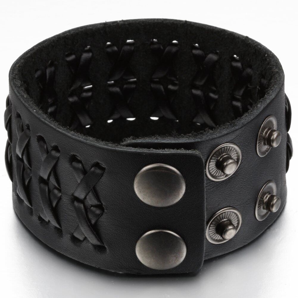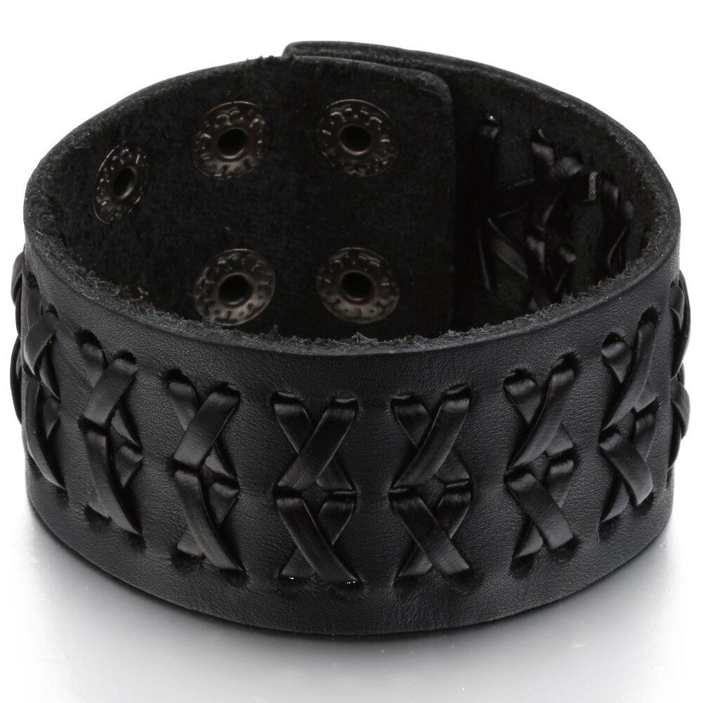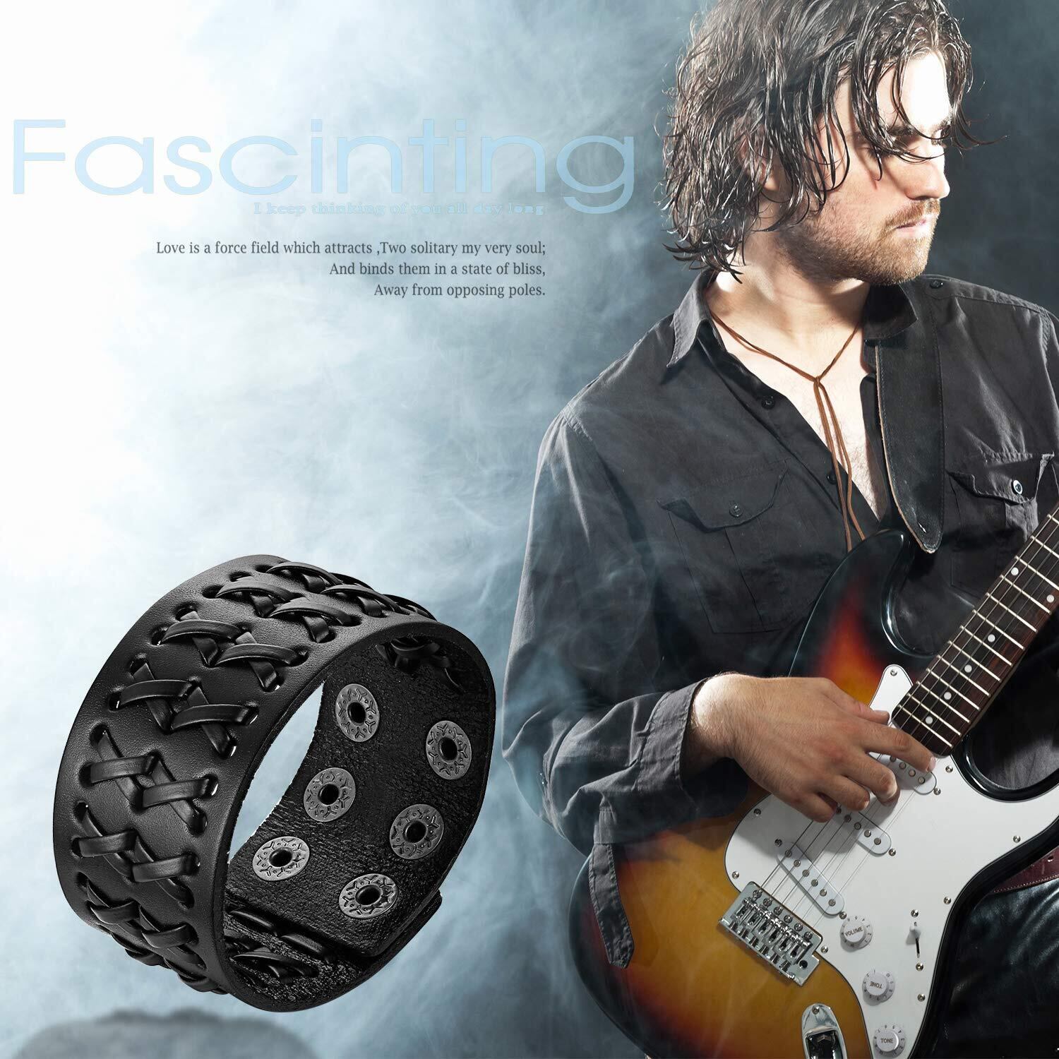 JewelryWe 大切な人や,彼氏・彼女へのプレゼント:ジュエリー ファッション アクセサリー メンズ ブレスレット, ワイド 幅広 ゴシック パンク系 ロック バングル, レザー 革, 合金, カラー:ブラック;[ギフトバッグを提供]