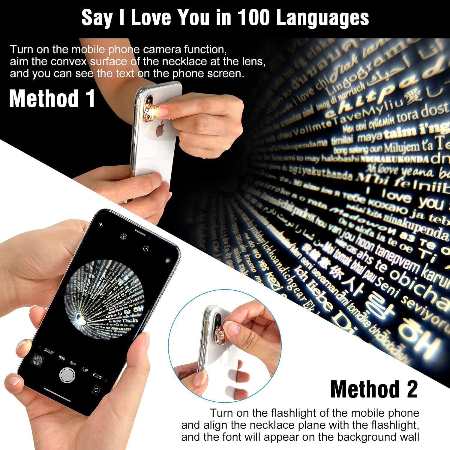 100の言語でネックレスを愛しています:光源の照明の下で、100種類の「愛しています」の言語が反映されます(注:入浴中はネックレスを着用しないでください。入ってくると酸化が速くなります)シャワージェルと接触すると元の色を失います。)