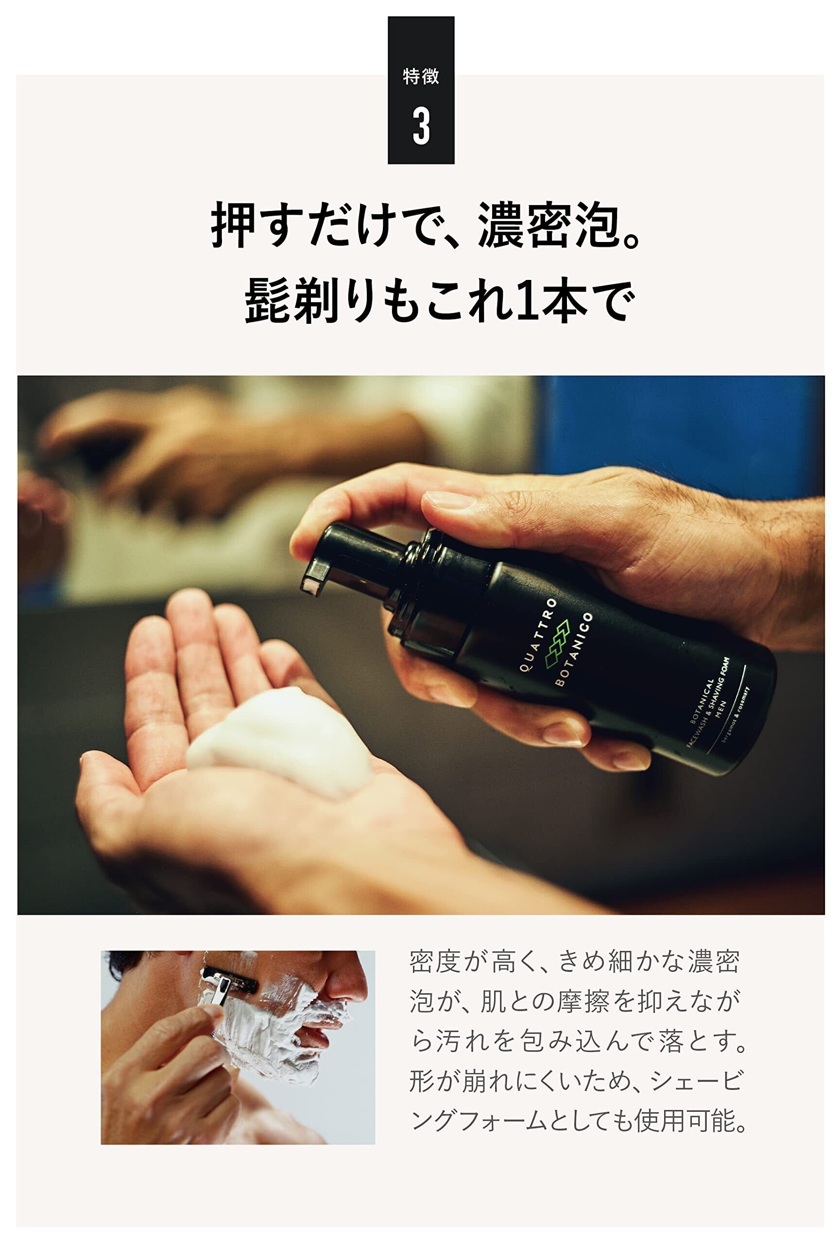 クワトロボタニコ 泡洗顔 メンズ ラッピング付き 乾燥肌用 ボタニカル フェイスウォッシュ & シェービング フォーム 濃密泡 ポンプ 敏感肌 男性 保湿 スキンケア プレゼント ギフト 150ml
