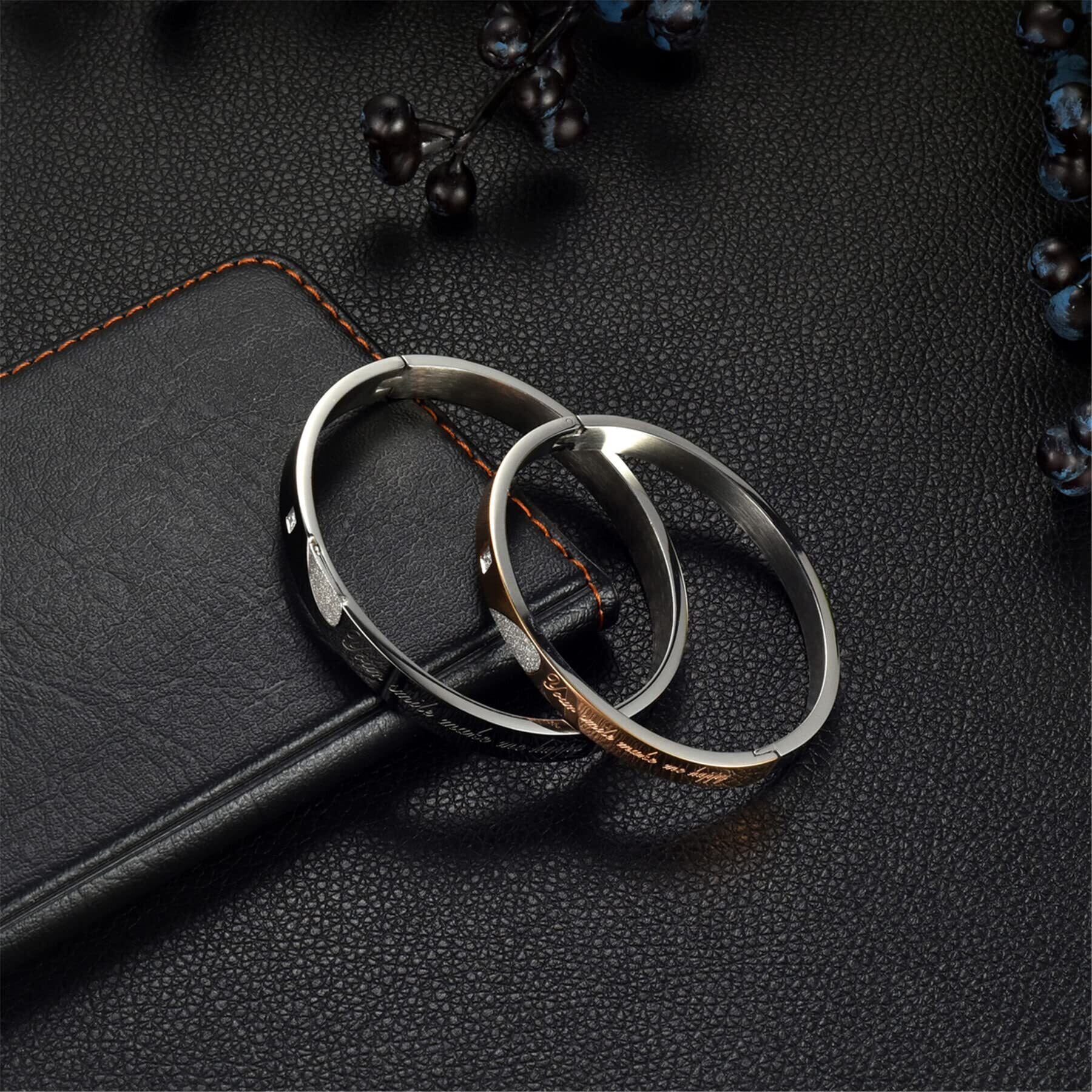 [Flongo, 恋人バングル, ペア腕飾り, カップルブレスレット, ジルコン嵌め, ステンレス, ハートモチーフ, バレンタインデー, 記念日, 誕生日, 告白, プレゼント, ギフト袋付き]