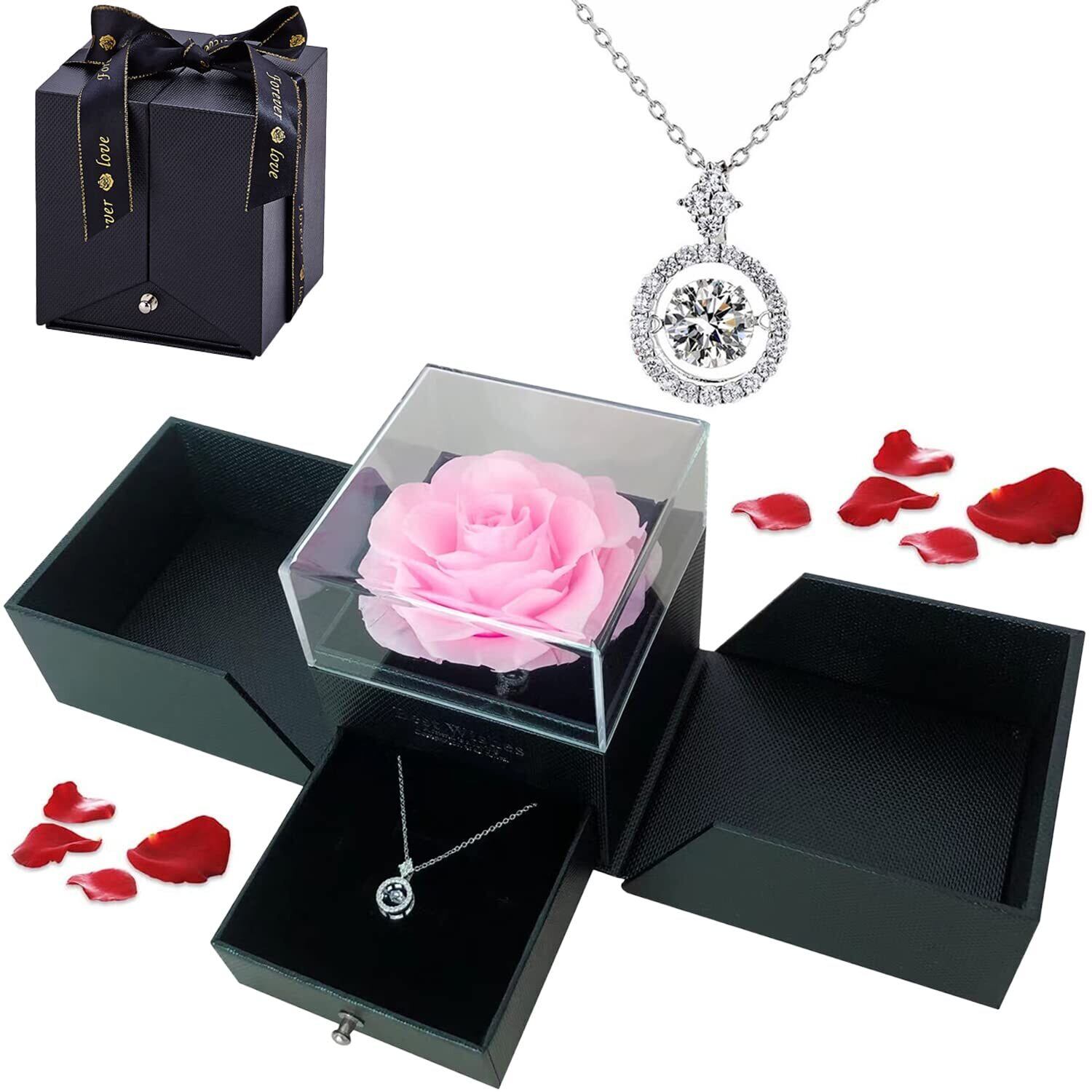プリザーブドフラワー ネックレス プレゼント 枯れない花 誕生日プレゼント 女性 人気 彼女 妻 母 贈り物 として バレンタイン 記念日 結婚祝い 引越し祝い 母の日 敬老の日 プレゼント クリスマス 入学 卒業 メッセージカード付き (ピンク)