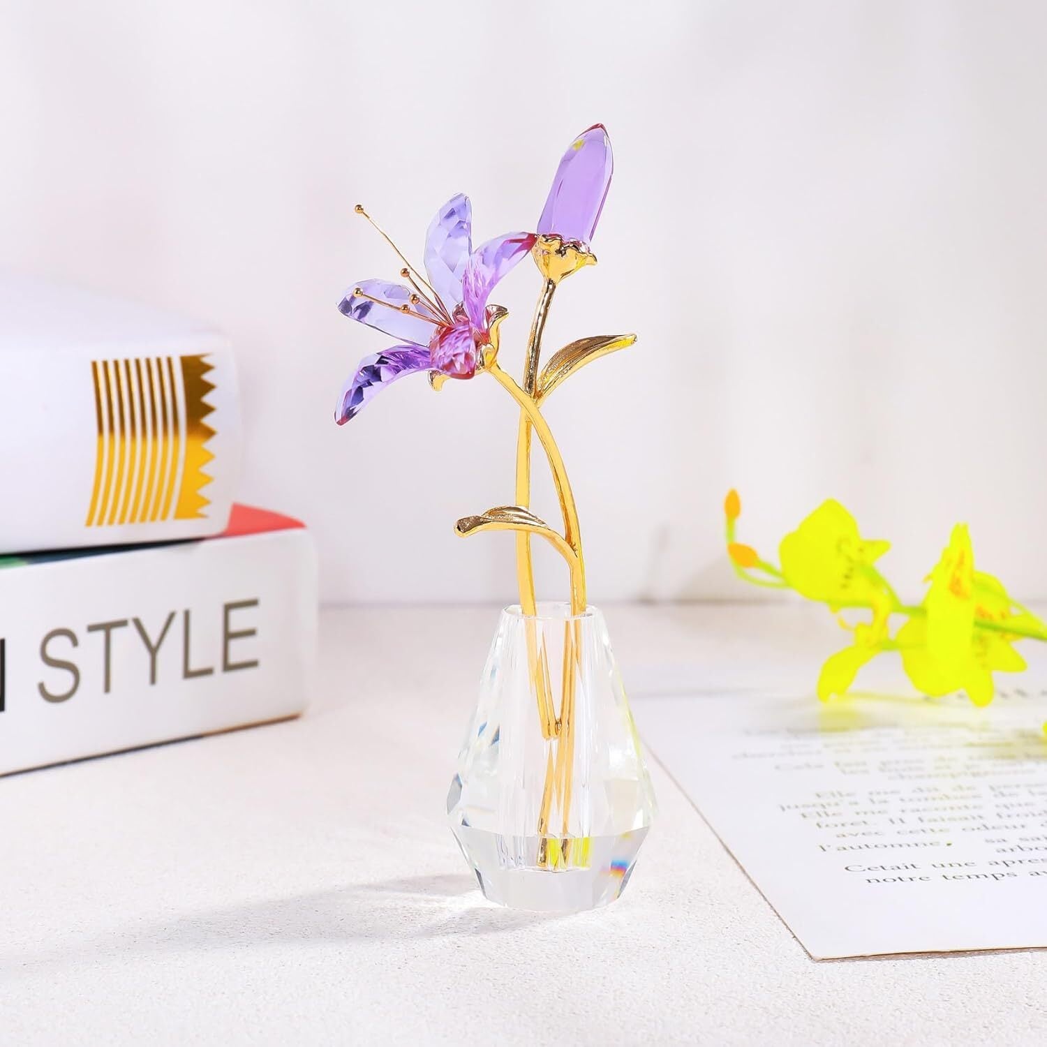 ◆【誕生日 プレゼント 母親 妻 彼女 女性 人気 百合 造花【正規品】 K9 クリスタル ユリの花 インテリア 枯れない花 ガラス細工 置物 結婚記念日 結婚祝い 退職 送別会 クリスマス ギフト - パープル】◆