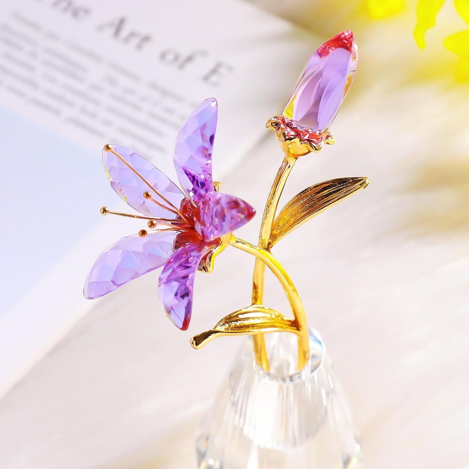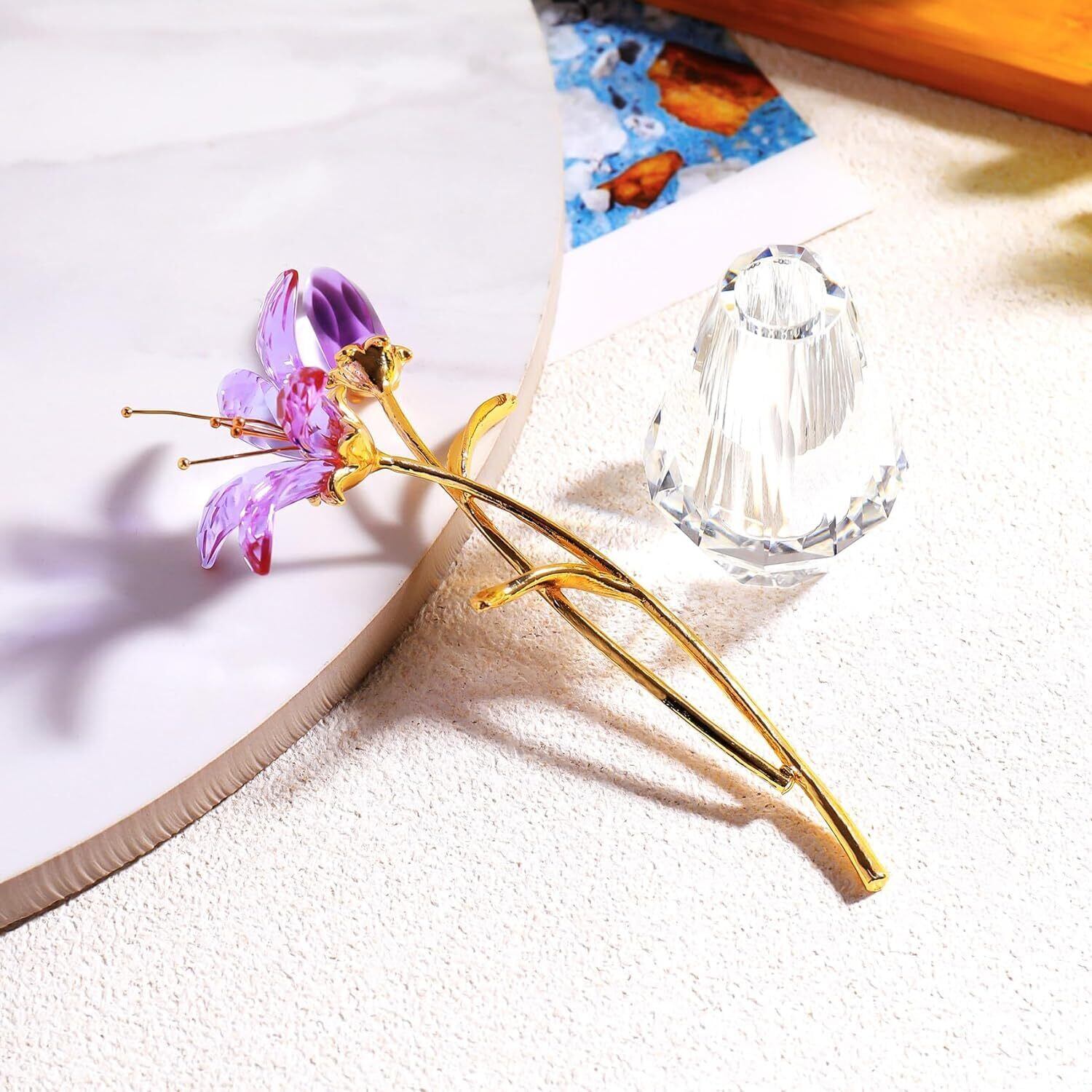 誕生日 プレゼント 母親 妻 彼女 女性 人気 百合 造花【正規品】 K9 クリスタル ユリの花 インテリア 枯れない花 ガラス細工 置物 結婚記念日 結婚祝い 退職 送別会 クリスマス ギフト - パープル