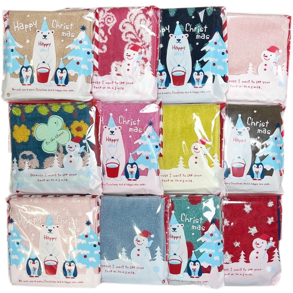 <アソート12個セット> 当店オリジナルかわいいタオルハンカチ クリスマス仕様 ラッピング袋入