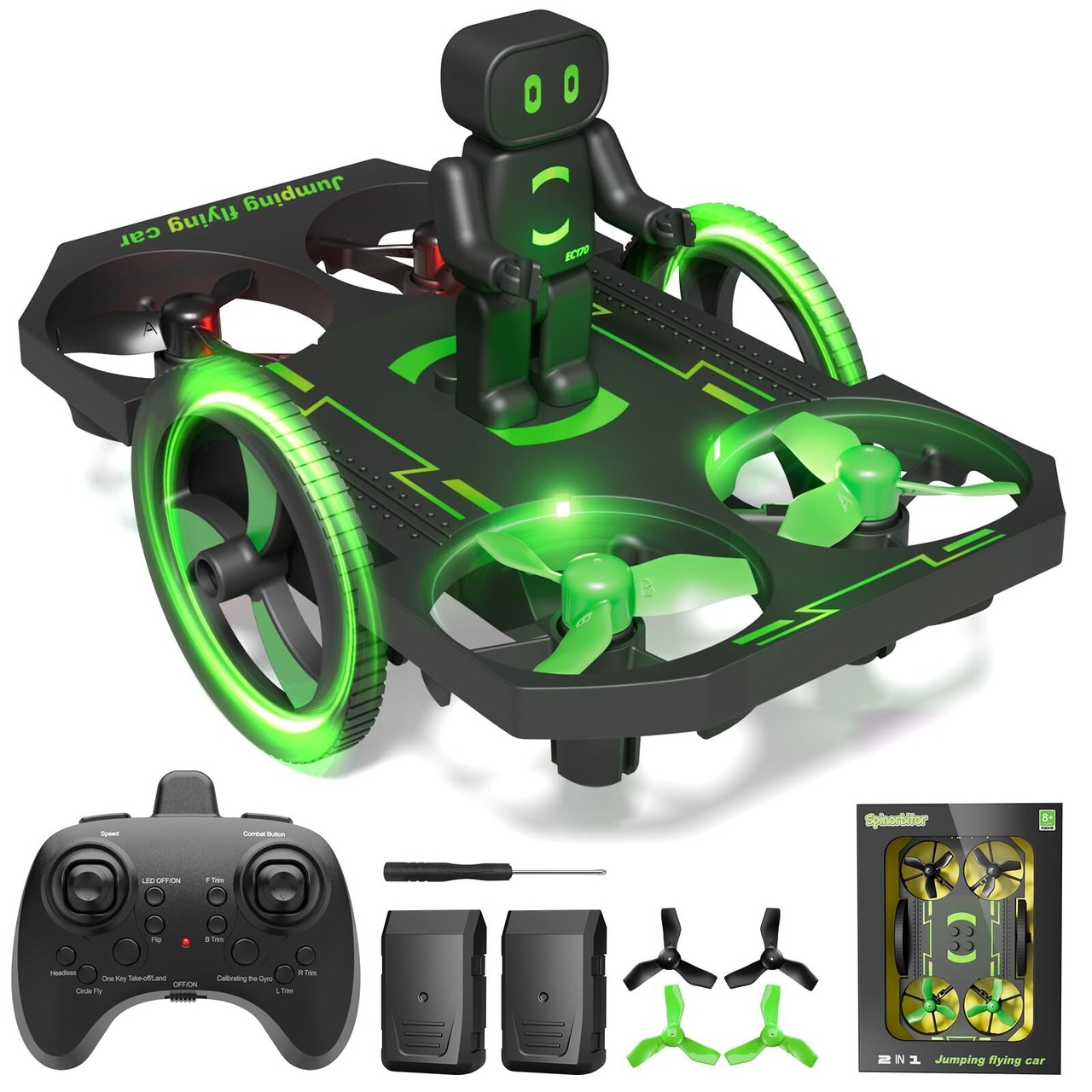 【空も走るもおまかせ!2WAYミニドローン】このミニドローンは、飛行と地上走行の両方に対応したユニークなおもちゃです。室内でも屋外でも楽しく操作でき、子供から大人まで幅広い年齢層におすすめ。障害物のジャンプ回避やドリフト走行も可能で、自由自在なアクションを実現します。