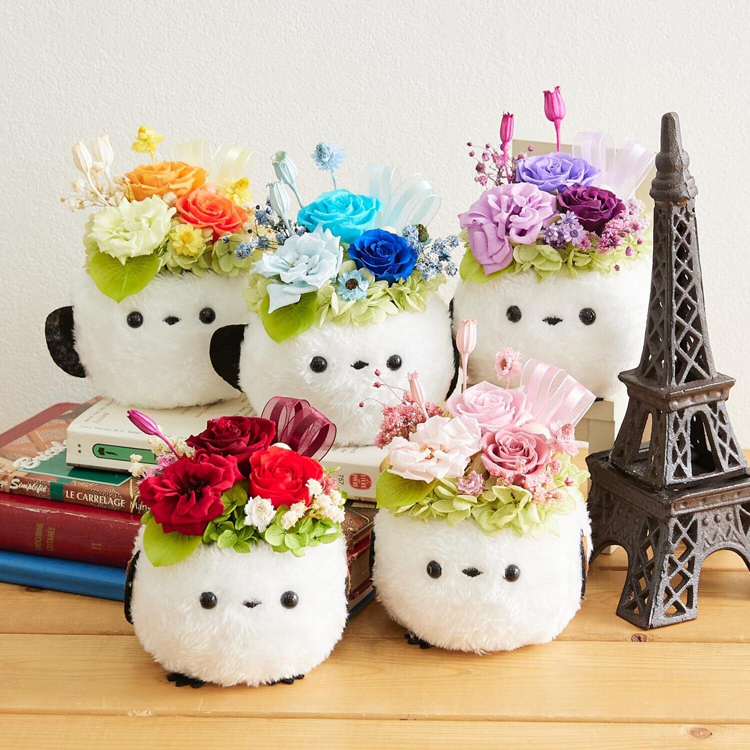 上質な素材を使用したプリザーブドフラワーは、高い耐久性を誇ります。優しいピンクの色合いは、贈る相手の心を温めることでしょう。美しいフォルムのシマエナガが、インテリアとしても存在感を放ち、お部屋を華やかに彩ります。