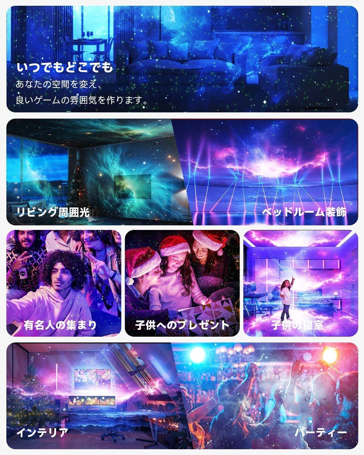 【幅広く大活躍・素敵なプレゼント】スターライトプロジェクターは幻の雰囲気を作り、子供の想像力と創造性を啓発できます。ベッドサイドランプ、寝かしつけ用おもちゃ、星空ライト、ナイトライト、ギャラクシーライト、プラネタリウム 家庭用、投影ライト、パーティーライト、ムードライト、生放送の背景ライト、部屋のインテリアライトとして使うのもいいし。それから、子供の一人寝、パーテイー、飲み会、家族カラオケ、学園祭などの場合に飾りライトとして使うのもいいです。とても良い誕生日プレゼント、祝日プレゼントです。