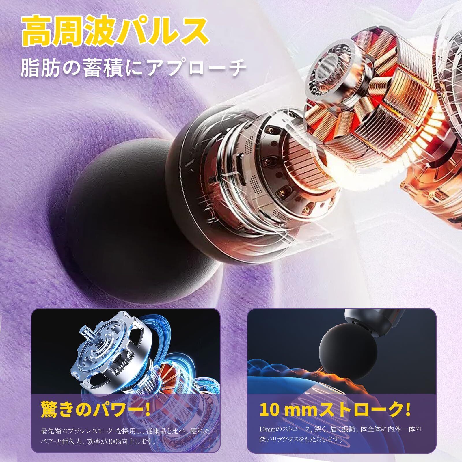 【史上最高クラスリリースガン!強く、深く、届く振動】Lihilisハンディガンは、各方面のプロが愛用。最先端のブラシレスモーターを採用し、従来品と比べ、電動機の効率が300%向上し、より安定した安全性能が備わっており、使用可能年数も10年に達します。通常の約2.5倍の10mm振幅だから深くまで届いて心地いい。深く、強く、届く振動、内側から外側に向けて緊張と硬直感を解放し、内外一体の深いリラックスをもたらします。しっかり振動!もっと全身に、もっと効率よく。