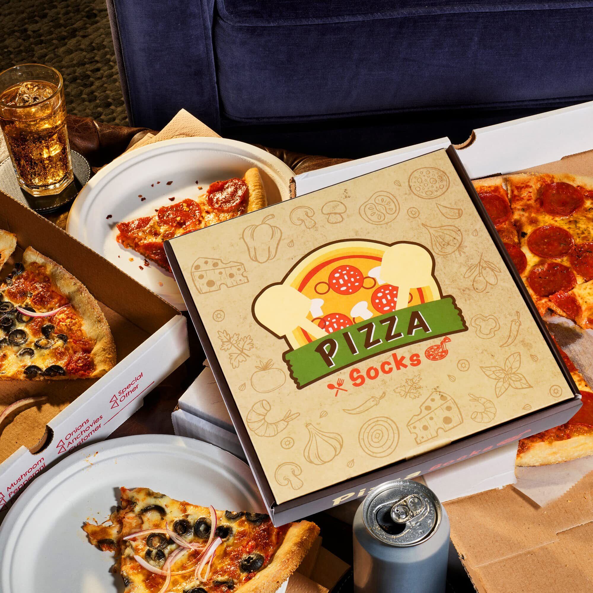 [AGRIMONY] ピザボックス 靴下 メンズ レディース 男の子 - おもしろ プレゼント男性 女性 クリスマス 誕生日 人気 ギフト おかしお 洒落 かわいい コットン おしゃれ クルーソックス - バレンタイン ギフト