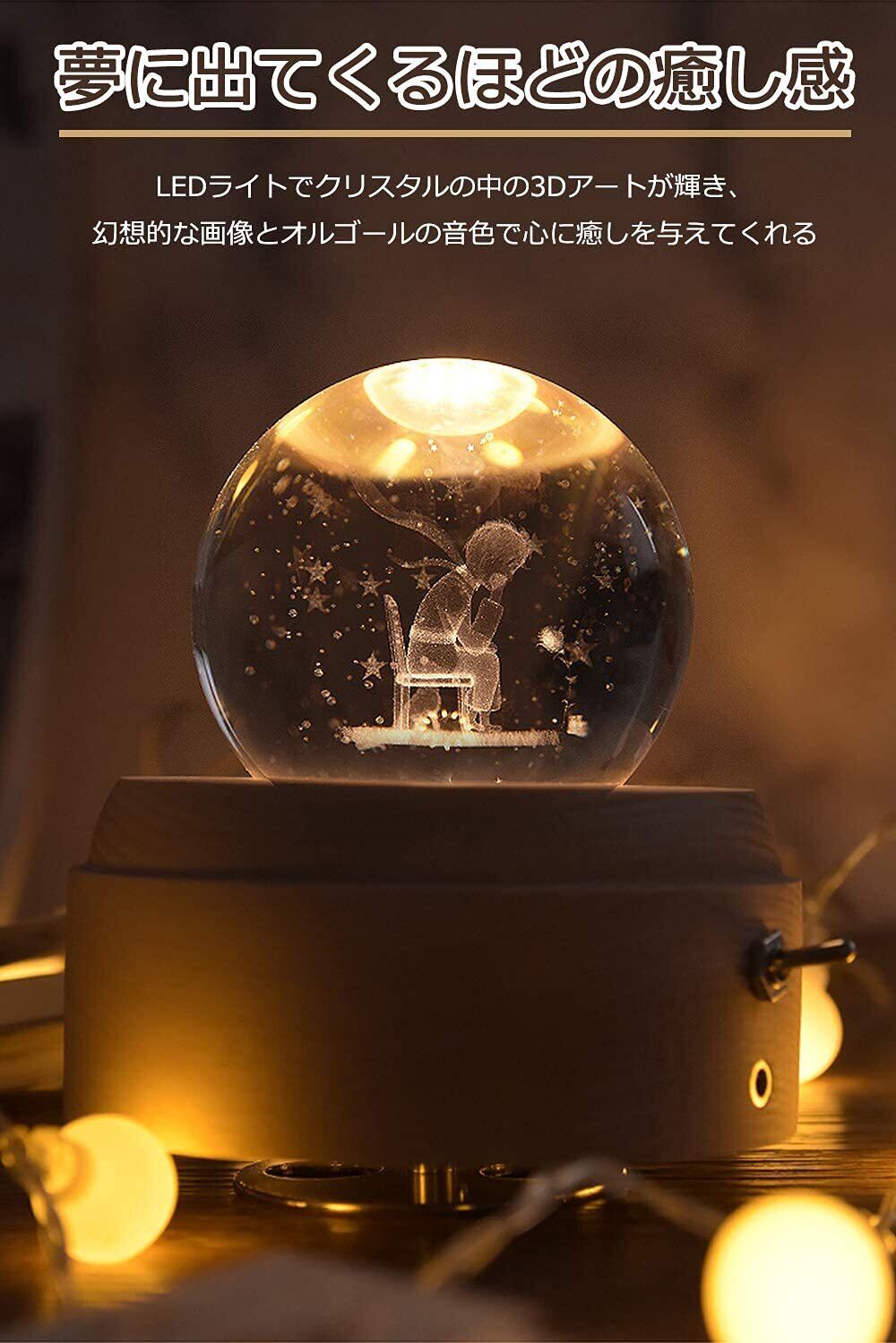 【夢に出てくる癒し感】LEDスタンドに乗せるとクリスタルの中の月が光り輝き、オルゴールの上に綺麗な花の投影も出て、幻想的な画像とオルゴールの音色で夜を素敵に演出してくれます