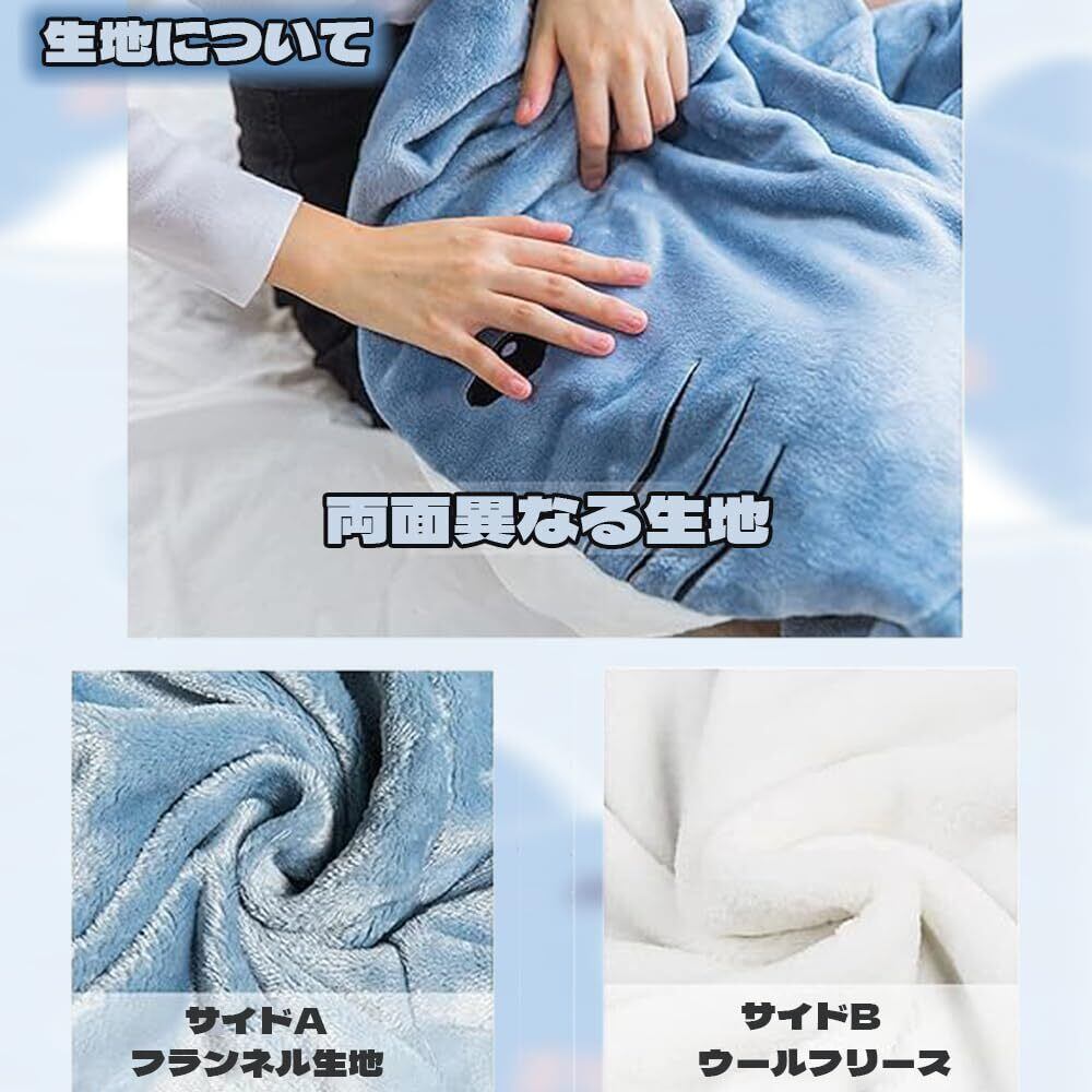 【シャーク ブランケット】: シャーク ブランケットのブランケットは、大人から子供まで幅広い年齢層に愛される、楽しいアニマルブランケットです。サメの形状が特徴的で、着ることができるので、寝袋やパジャマのように楽しむことができます。