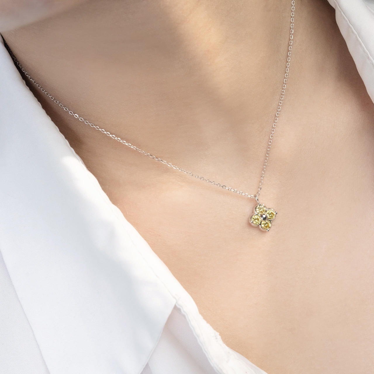 四つ葉とシトリンの共鳴:11 月誕生石が象徴する「陽気と豊かさ」のエネルギーが、幸運のクローバーが宿す「希望・誠実・愛・繁栄」と調和。光の角度で変化するシトリンの黄金色が温かな雰囲気を演出