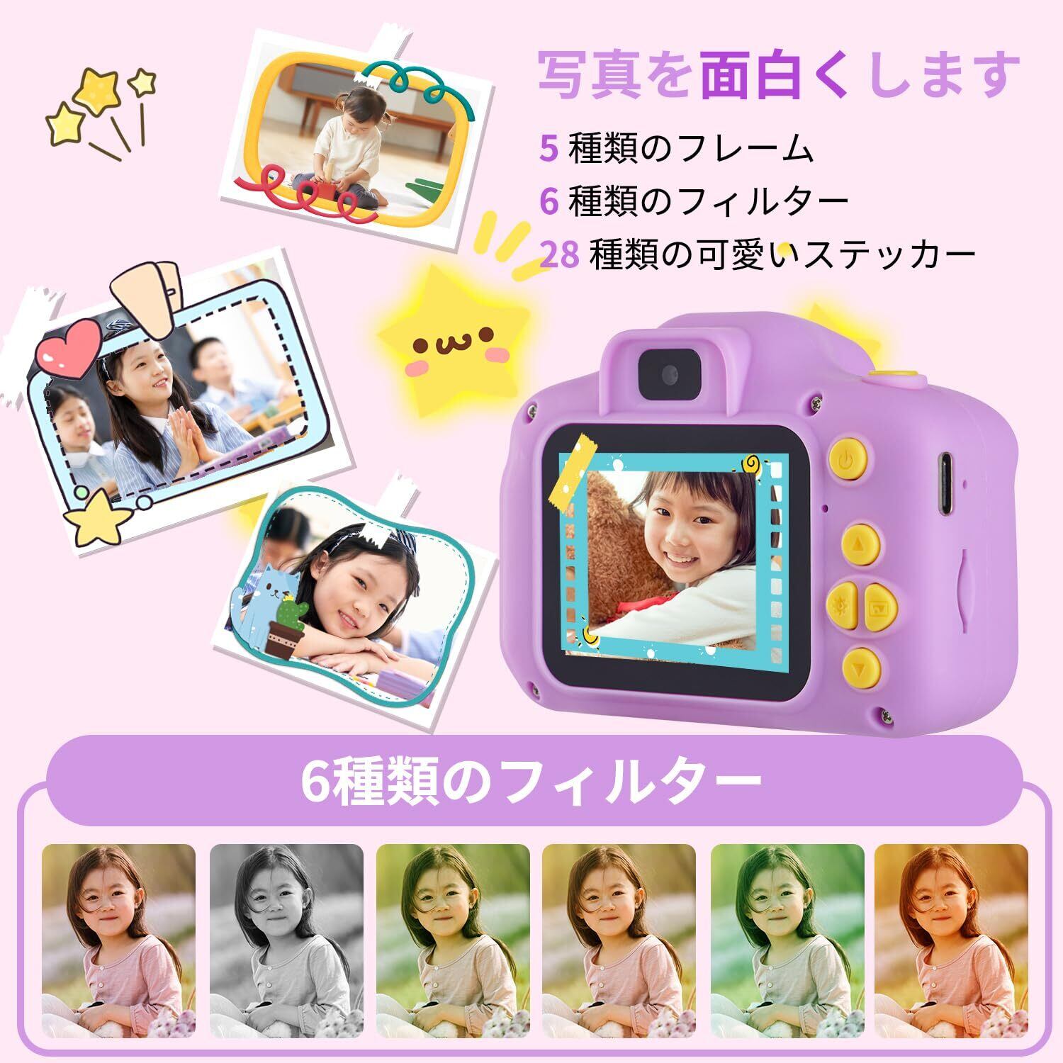 【機能性バツグン】これは、5つのフォトフレーム、6つのフィルター、28種類のかわいいステッカーが提供される、子供用デジタルカメラです。子供たちに創造的なカスタム写真体験を提供します。さらに、タイムラプス撮影機能を備えており、子供たちは楽しみながら時間の経過を記録できます。搭載の教育ゲームは、子供たちが楽しみながら学ぶ手助けをします!