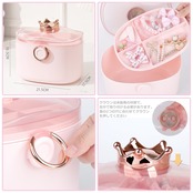 【素敵な2層クラウン収納ボックス付き】ボックスの材質:PP。サイス:幅21.5×奥行17.5×高さ18.5cm。様々な種類のアクセサリーが入る大容量の2層収納ボックスです。可愛い外観と耐久性を持っています。ロックがあり、大切なヘアアクセサリーをまとめてかわいく収納できます。