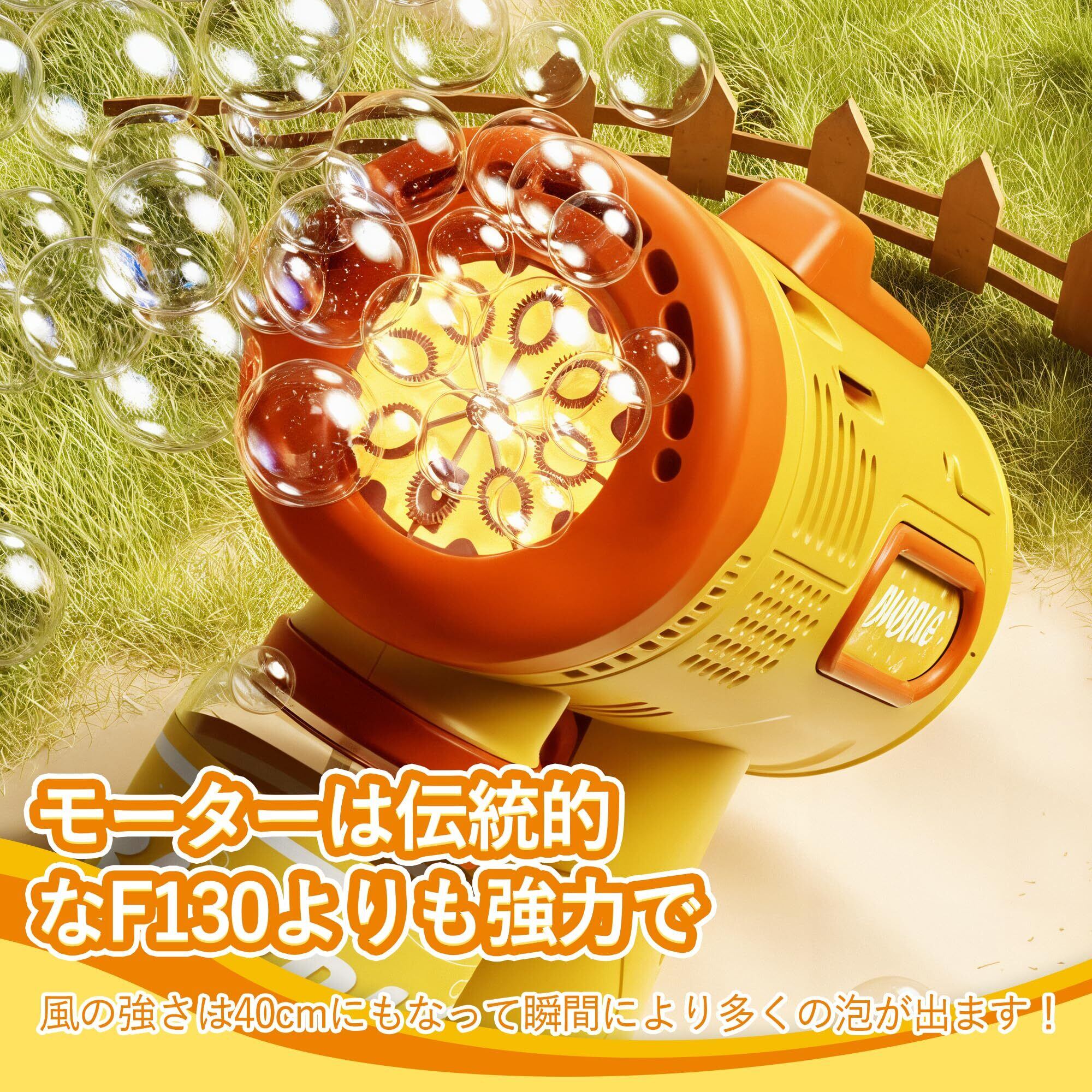 【改良モーター搭載、泡の飛距離40cm】伝統的なF130モーターとは異なり、強力なパワーを持つ改良されたモーターを採用します。シャボン玉の吹き出し距離が40cmに達し、外遊び おもちゃのシャボン玉 電動バブルガンとしてシャボン玉がより遠くまで届きます。