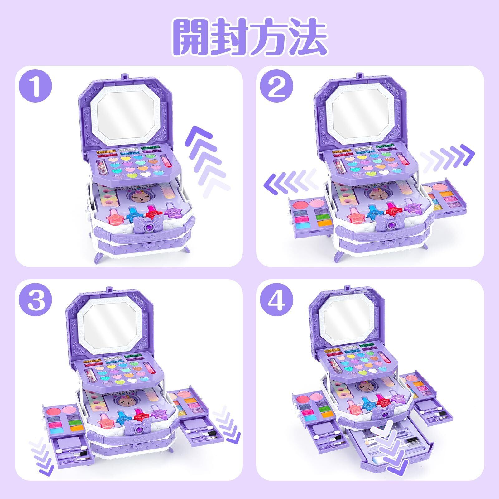 安心安全の素材:ママも安心の女の子おもちゃ当化粧品セットは、お子様の肌を第一に考え、無害な素材を使用しています。水洗いで簡単に落とせるため、肌への負担が少なく、ママも安心して遊ばせてあげられます。(※ご使用前には、腕の内側などでパッチテストを行い、異常がないかご確認ください。)安全性に配慮した女の子 おもちゃとして、楽しい遊びをお届けします。