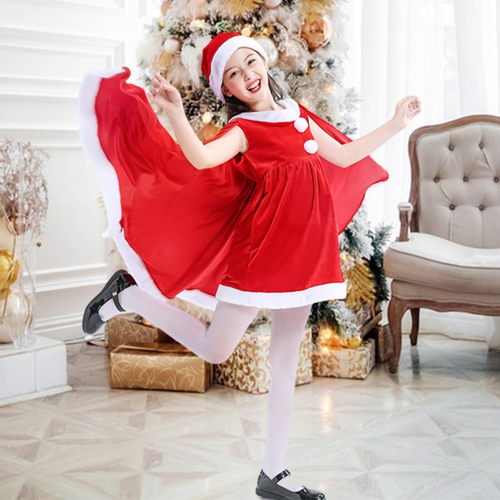[Matreeglam] サンタ コスプレ 子供 女の子 3点セット クリスマス仮装 ポンチョワンピース 帽子 キッズ サンタクロース 仮装 可愛い クリスマス 衣装 ポンチョ サンタ服 ふわふわ 柔らかい 記念写真 文化祭 舞台 演出服 パーティー プレゼント