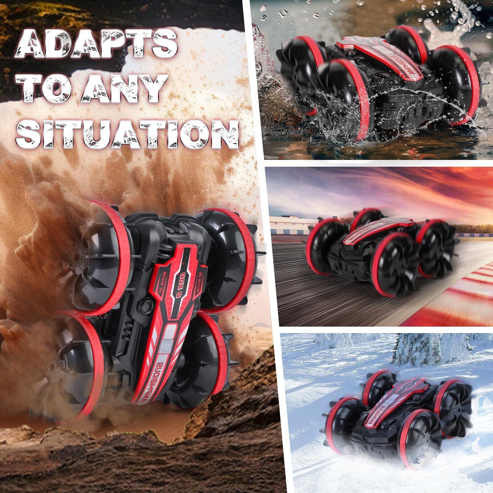 ラジコンカー こども向け 水陸両用 ラジコン オフロード 車 4wd スタントカー ラジコンカー 子供向け 人気 リモコンカー 360度回転 オフロードラジコン rcカー 子供 防水 クリスマス 男の子 プレゼント 小学生 中学生 誕生日 贈り物 (レッド)