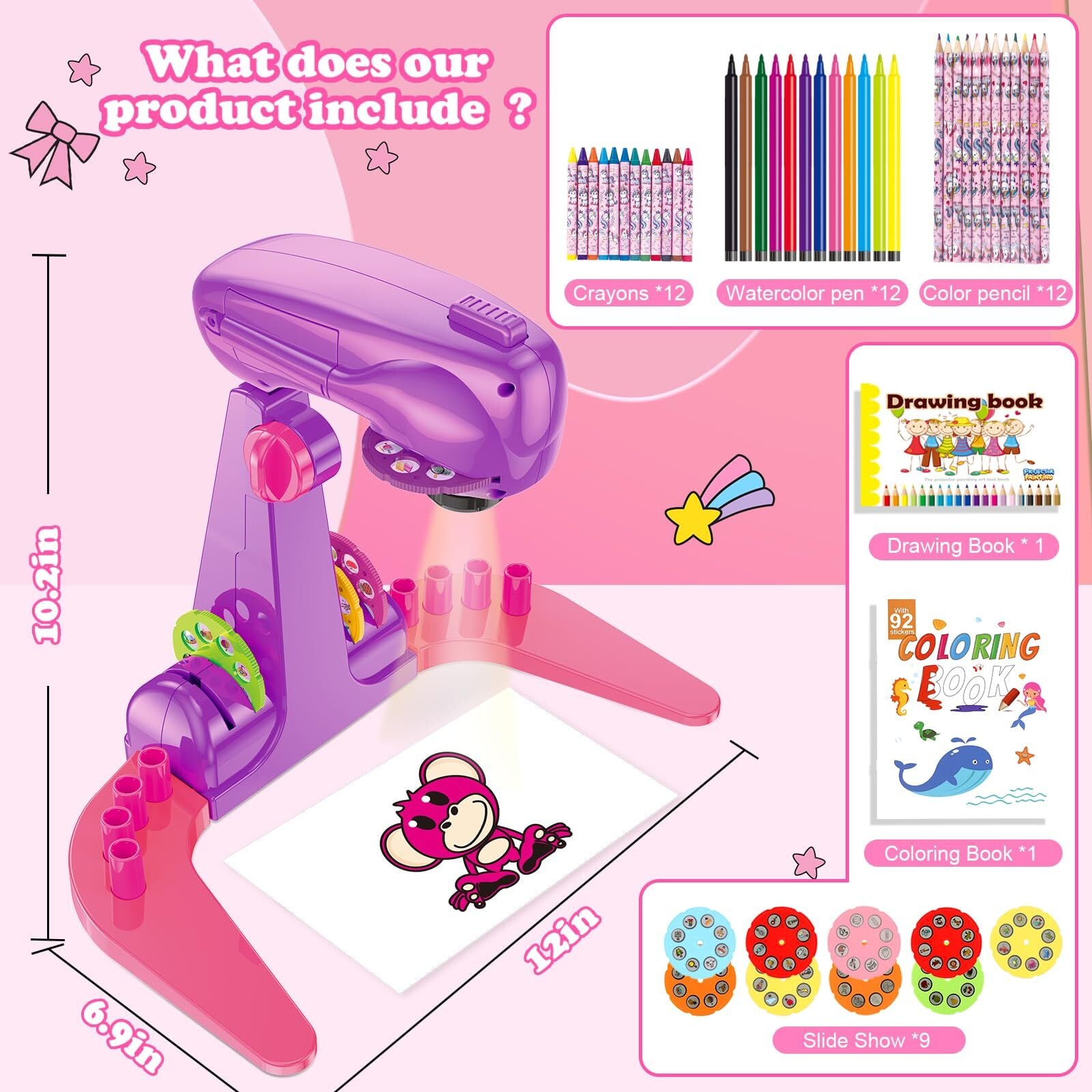 子供用描画プロジェクター 感謝祭やクリスマスへの子供向けギフト アート&クラフトキット 3歳以上の女の子向けおもちゃ 色鉛筆、クレヨン、塗り絵、3歳以上の女の子へのギフト(ピンクお絵かきキットv1)