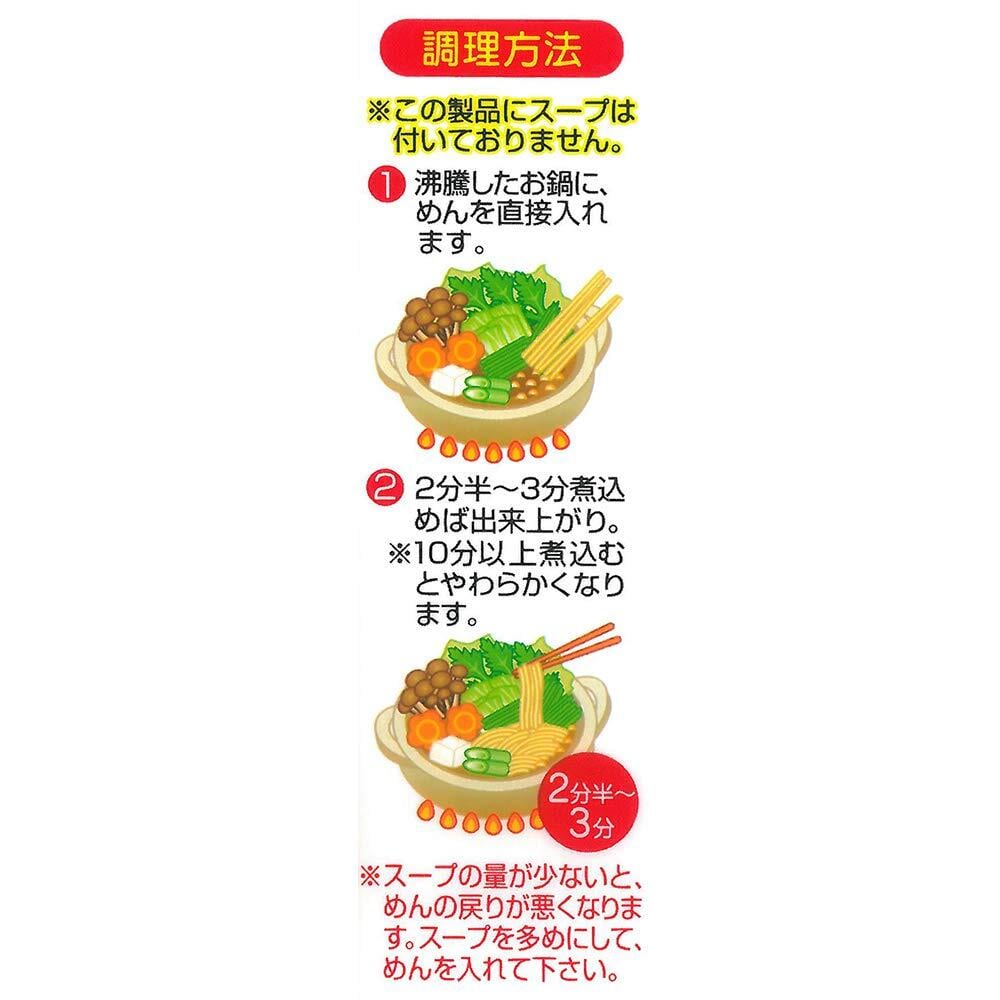 小麦粉の配合を工夫することで、鍋に直接入れても茹で溶けし難い麺に仕上げました。茹で時間が2分半~3分と短いのに、煮込んでも茹で伸びし難い麺です。なめらかさと弾力のある食感で、いろんなお鍋のスープと相性抜群です。もつ鍋、みそ鍋、ちゃんこ鍋、いろんなお鍋に!ラーメンの替え玉としてもご利用出来ます。