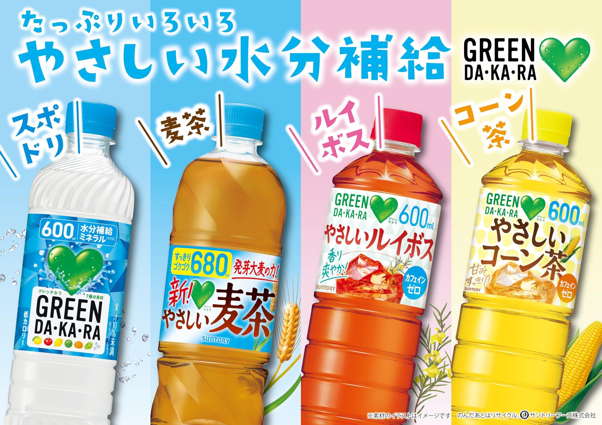 「GREEN DA・KA・RA」シリーズは、“日常生活の水分補給"をコンセプトに開発しました。日常生活で親しみのある素材を使い、子どもから大人まで幅広いお客さまにお召しあがりいただけます。
