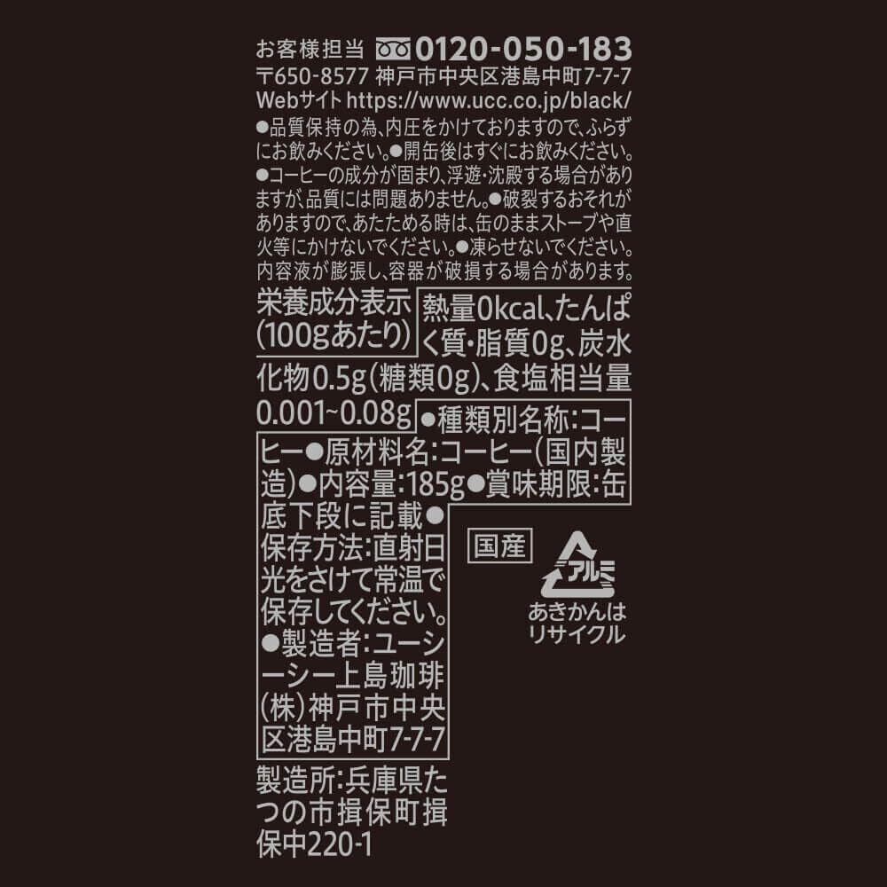 ブラック無糖 BLACK UCC 缶コーヒー185ml×30本