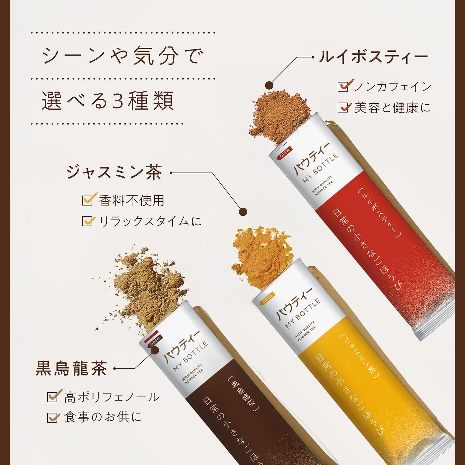【マイボトルサイズのスティックタイプ】パウティーシリーズから待望のマイボトル用スティックタイプが登場!350mL~500mLサイズのマイボトルにスティック1本入れるだけ!たった10秒で美味しいお茶のできあがり!パウダーの量を計る手間がかからないので、忙しい朝の支度時や、仕事や家事の合間でもパッと手早く作れます。お家だけでなく、職場や休日のお出かけ、スポーツやレジャー等、いつでも気軽に美味しいお茶をお楽しみいただけます。