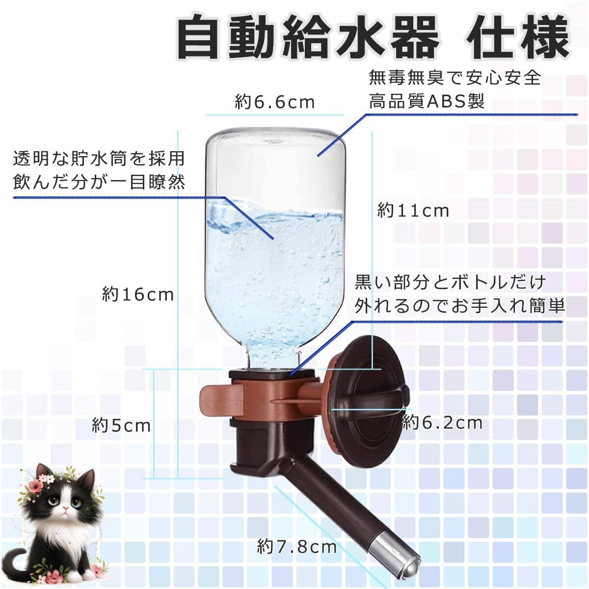 軽量 自動給水 ペットボトル 水漏れ軽減機能付 ゲージ かんたん取付 清潔 ペット用品 犬猫 ウォーターノズル 小動物にも対応