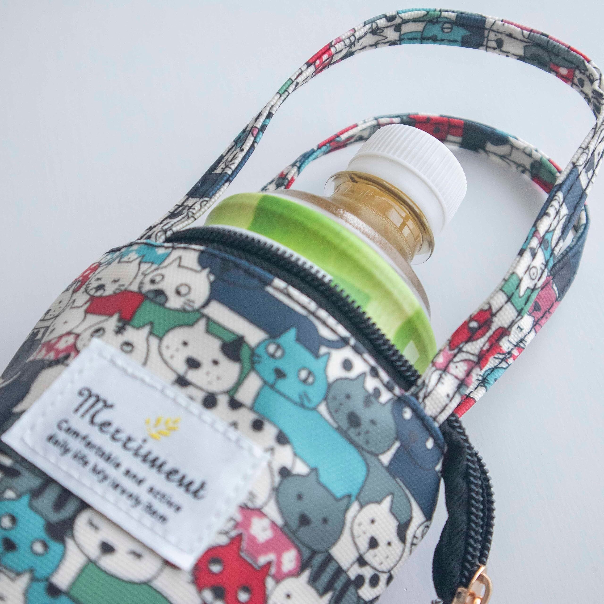 ペットボトルケース ペットボトルカバー 水筒 折り畳み傘 かわいい 収納ケース タオル地 吸水 インナー (A.猫 ねこ)