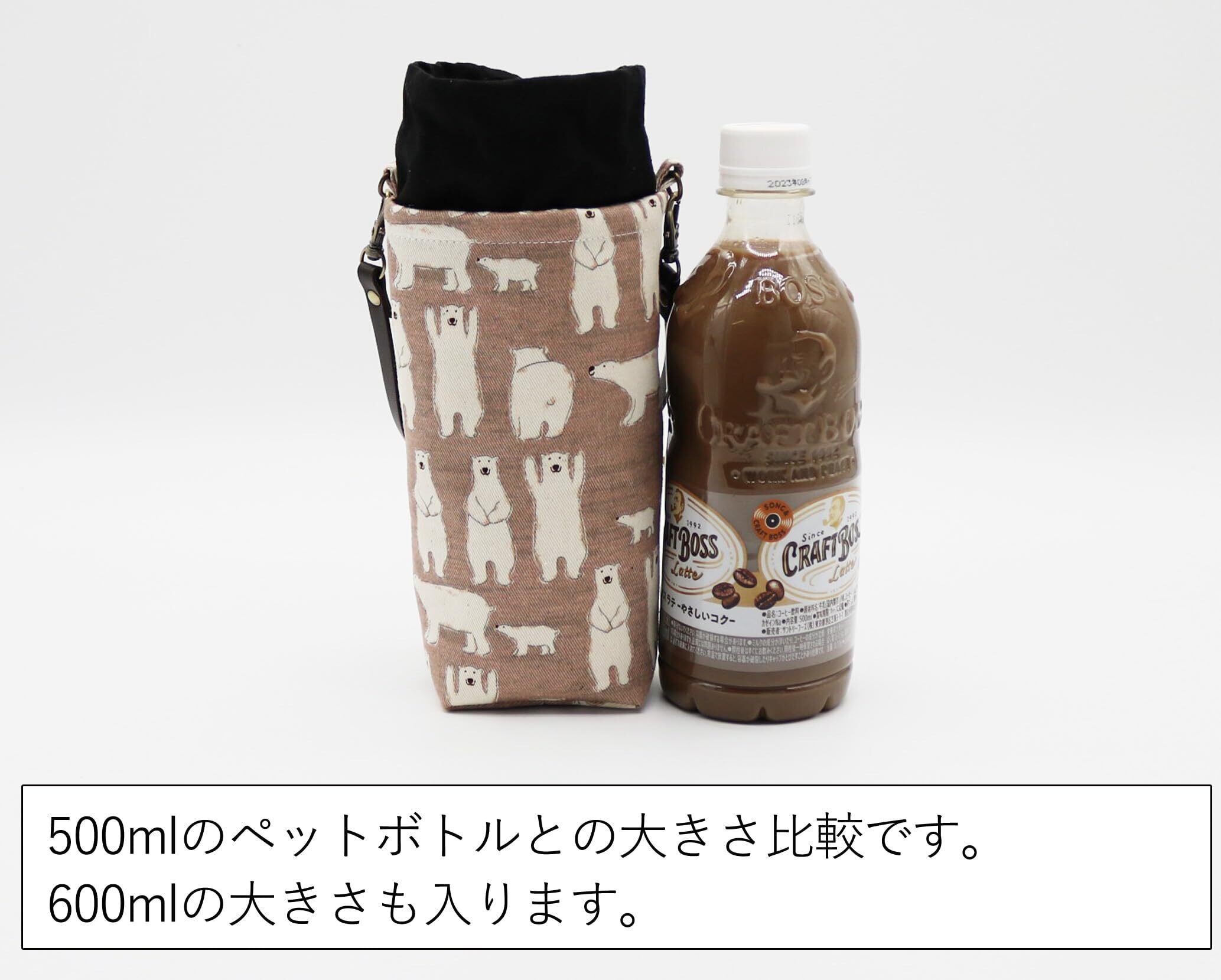 ペットボトルカバー 保冷保温 ペットボトルケース 水筒カバー マグボトルカバー 巾着 500~600ml 革持ち手 (しろくま)