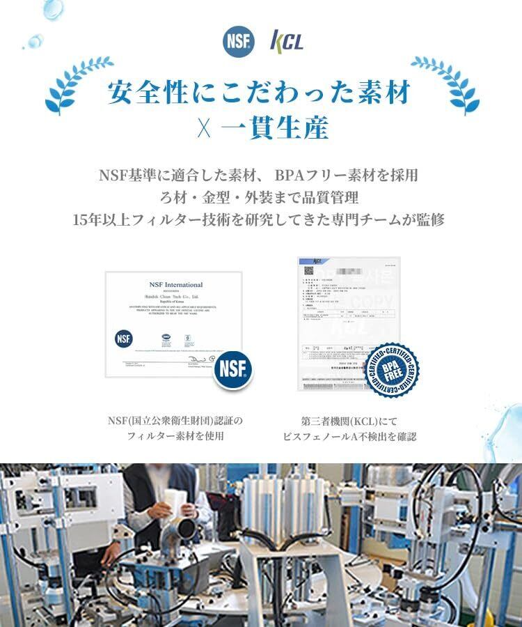 【高品質な素材】 本カートリッジには、第三者試験機関によりBPA(ビスフェノールA)/蛍光剤/有害物質が検出されなかった素材を採用しています。毎日使うものだからこそ、多少コストがかかっても、安全性に配慮した原料のみを使用しています。