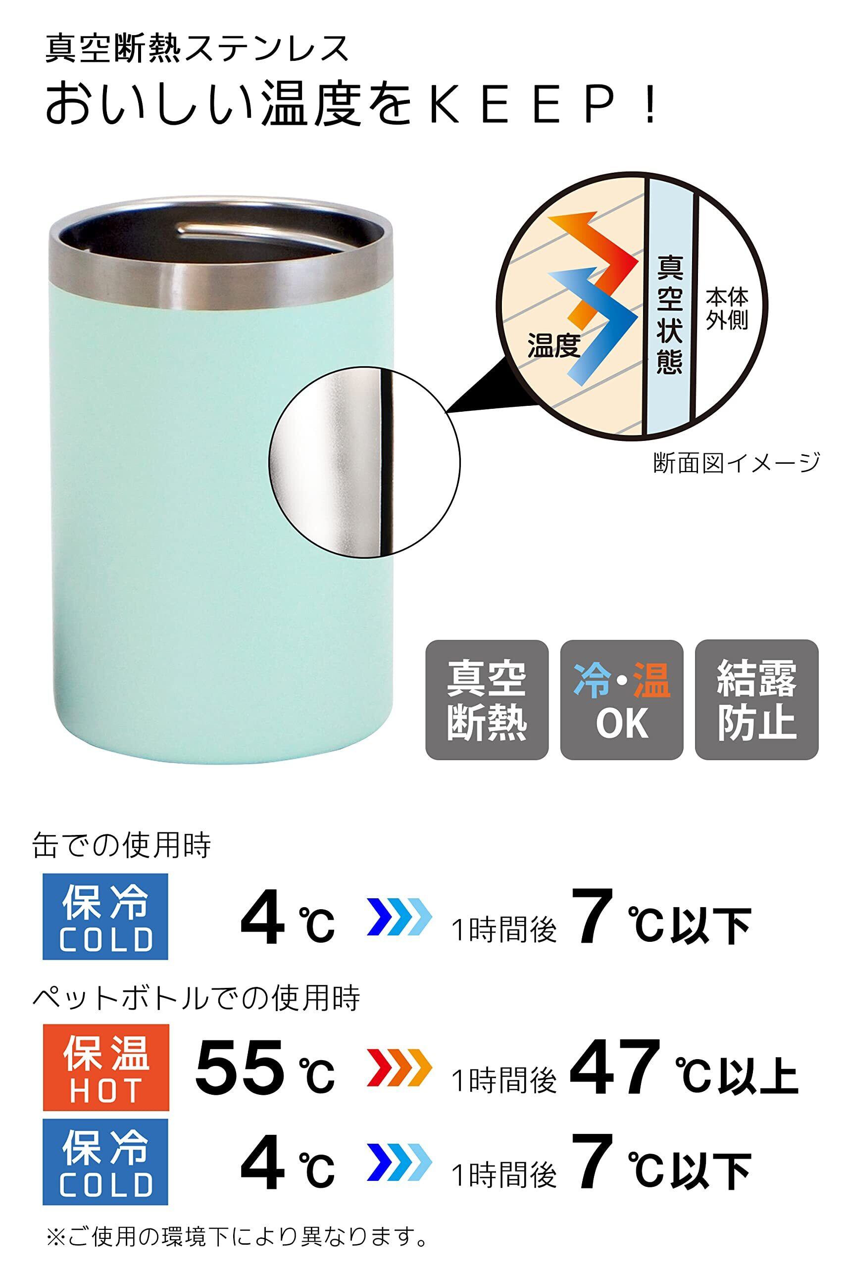 OGURA 缶ホルダー 350ml缶 保冷 真空断熱 ステンレス 缶ビール ペットボトル タンブラー 保温 (ミント)