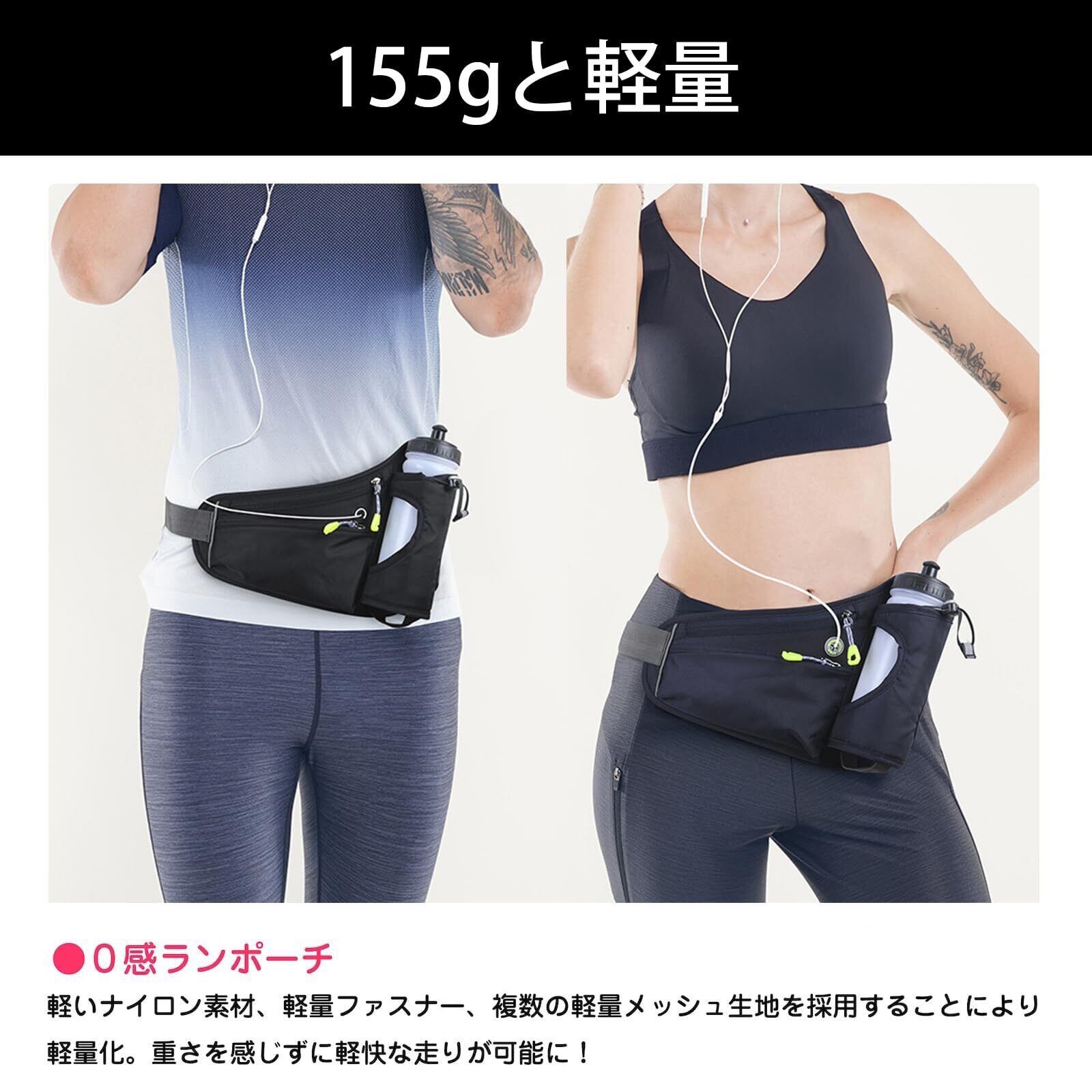 ランニング ポーチ ペットボトル スマホ 揺れない 軽量 水筒 ウエストポーチ ウォーキング レディース メンズ(ブラック)