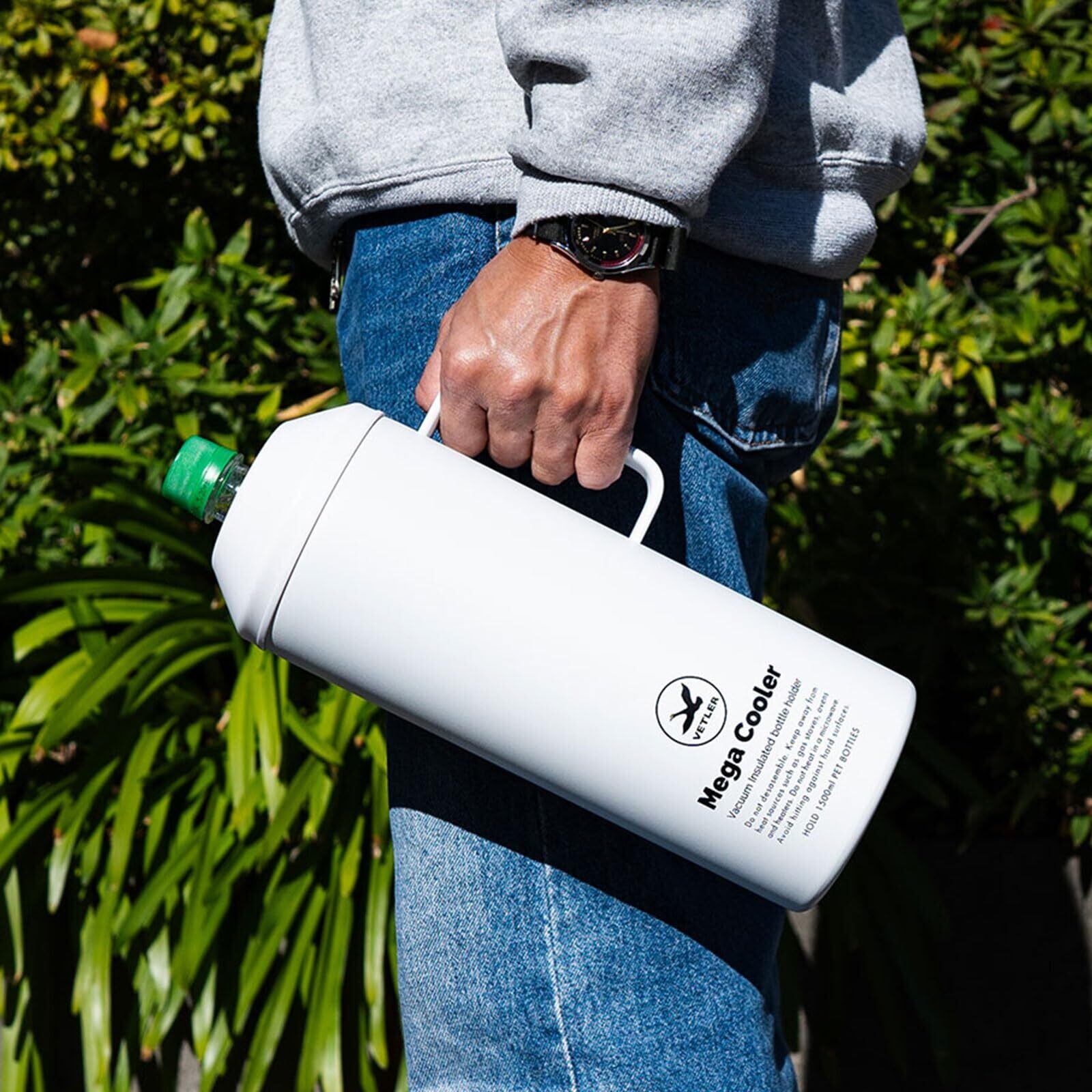 1.5L メガクーラー ペットボトルホルダー ペットボトルクーラー 10時間 保冷 大容量 真空断熱 ジャグ 電気代 節約 ステンレス 1500ml (ホワイト)