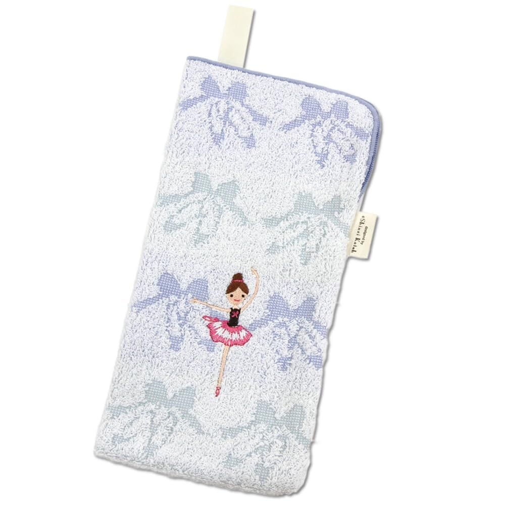 人気雑貨デザイナー「シンジカトウ」が「バレエ」をイメージしてデザインしたイラストを、タオル地にデコボコで表現し、バレリーナをワンポイント刺繍にして施しました。小物柄の背景に、かわいらしいバレリーナの刺繍、パステル調の優しい色づかいのデザインです。自分用はもちろん、ギフトや贈り物にも最適です。
