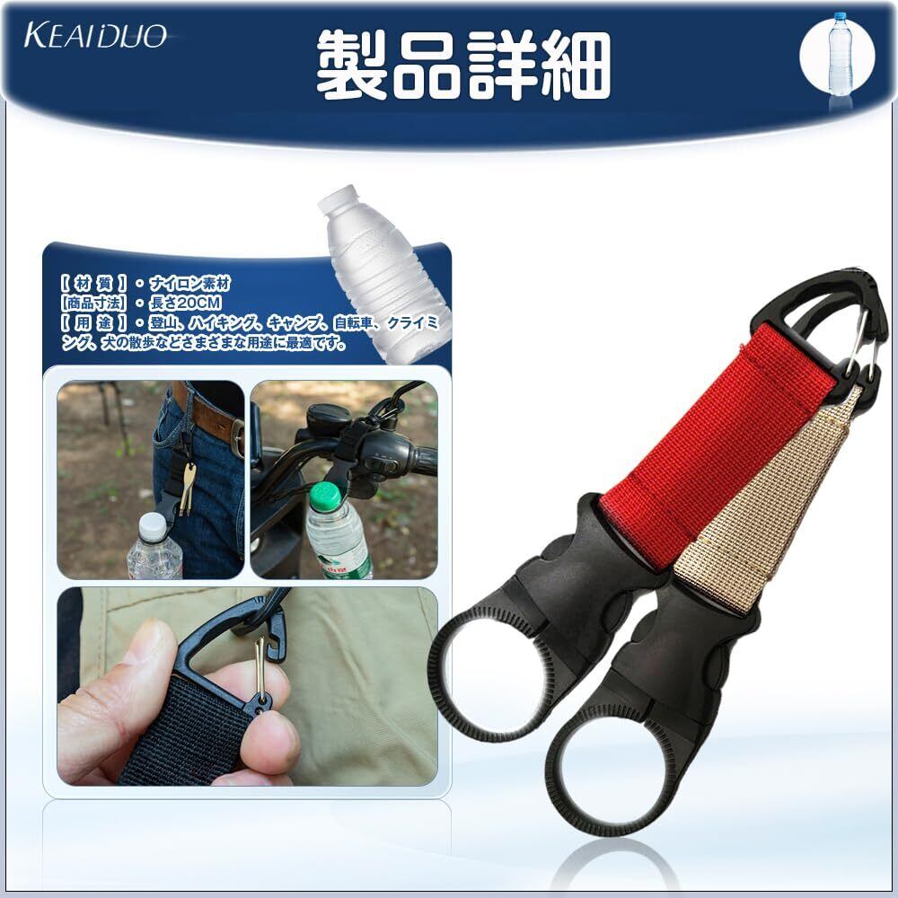 ペットボトルホルダー キャンプ 登山 アウトドア ハイキング 水分補給 ボトルフック 携帯便利 2個セット ドリンク ホルダー 旅行 着脱簡単 レッド/クリーム色 キーリング付き ナイロン材質 ストラップ 軽量 自電車 長さ20cm
