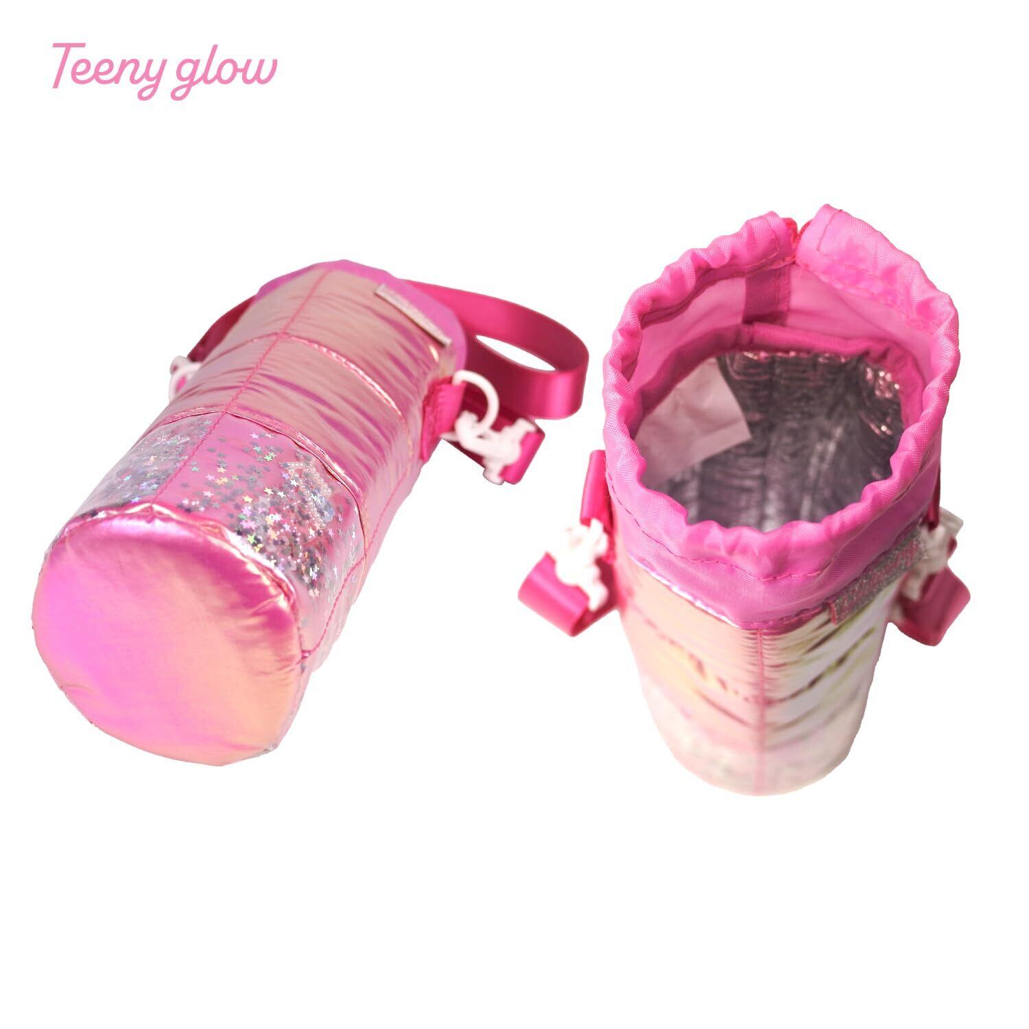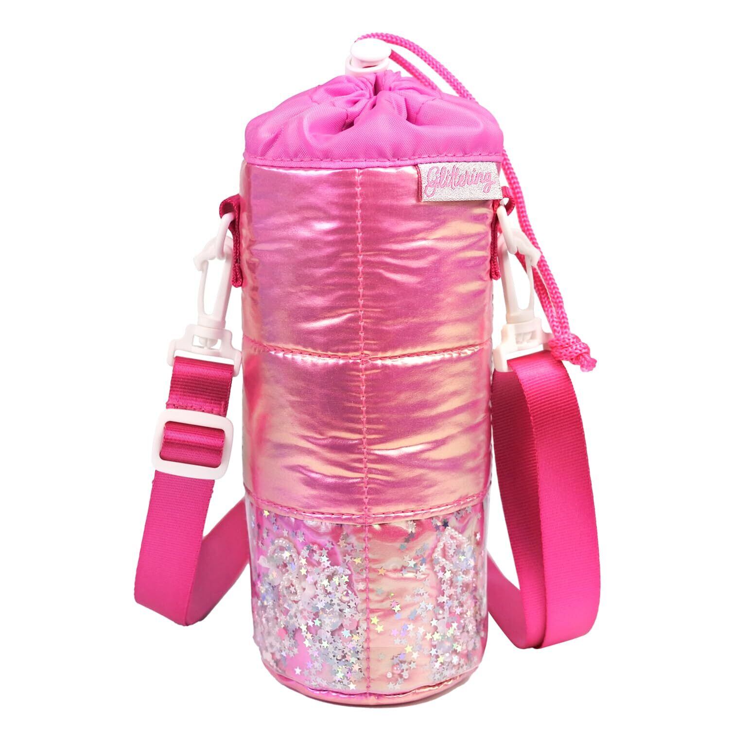 水筒カバー ペットボトルホルダー PK 女の子 子供 肩掛け 遠足 お出かけ 女子 小学生 入園 入学 幼稚園 かわいい (ピンク)