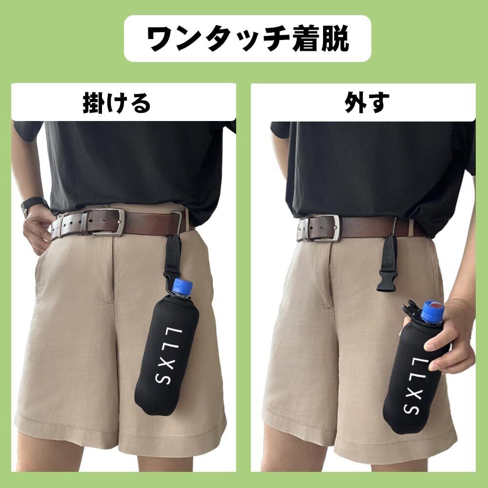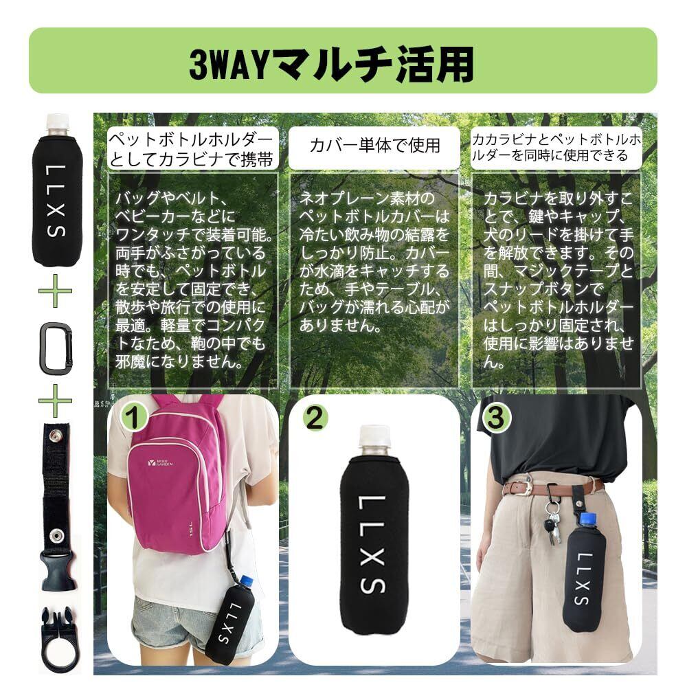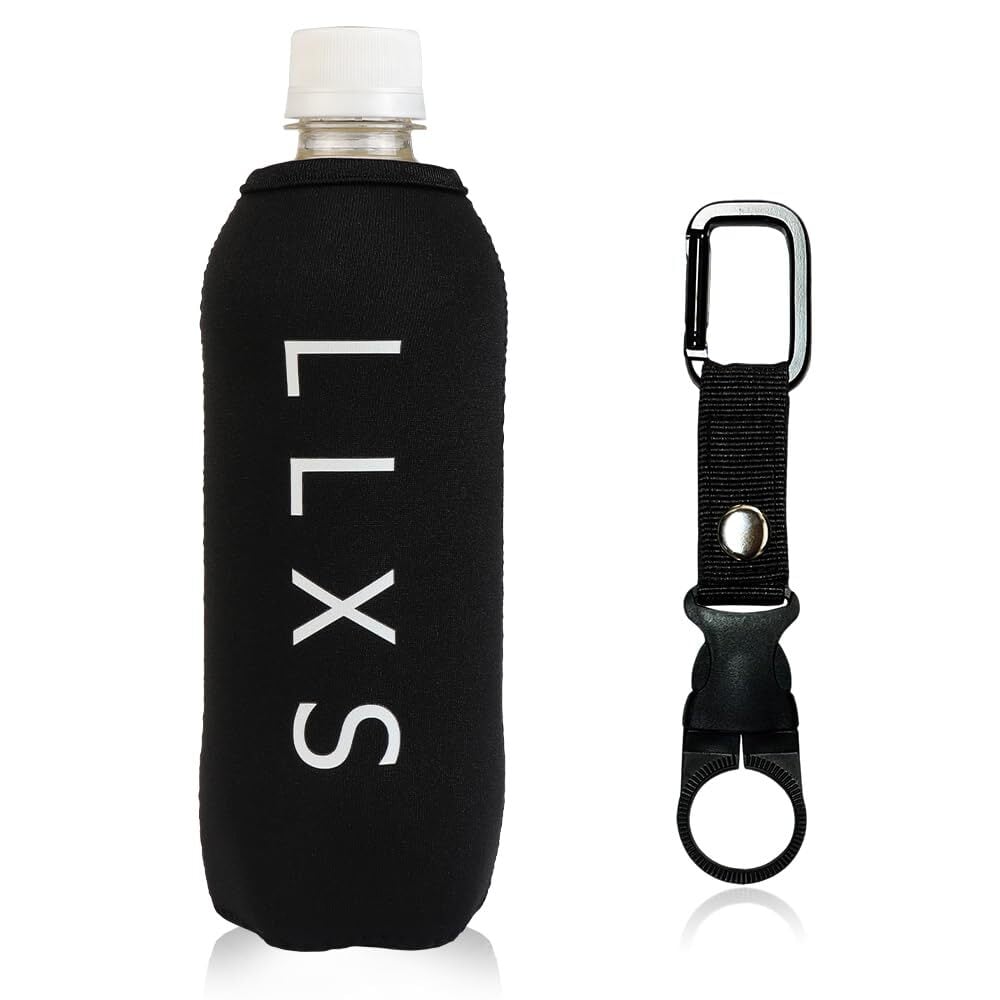 【2025新登場】LLXS 500ml~550ml ペットボトルホルダー カラビナ付き ペットボトルカバー 散歩 アウトドア 折り畳 ブラック 軽量 携帯便利 ブラック L