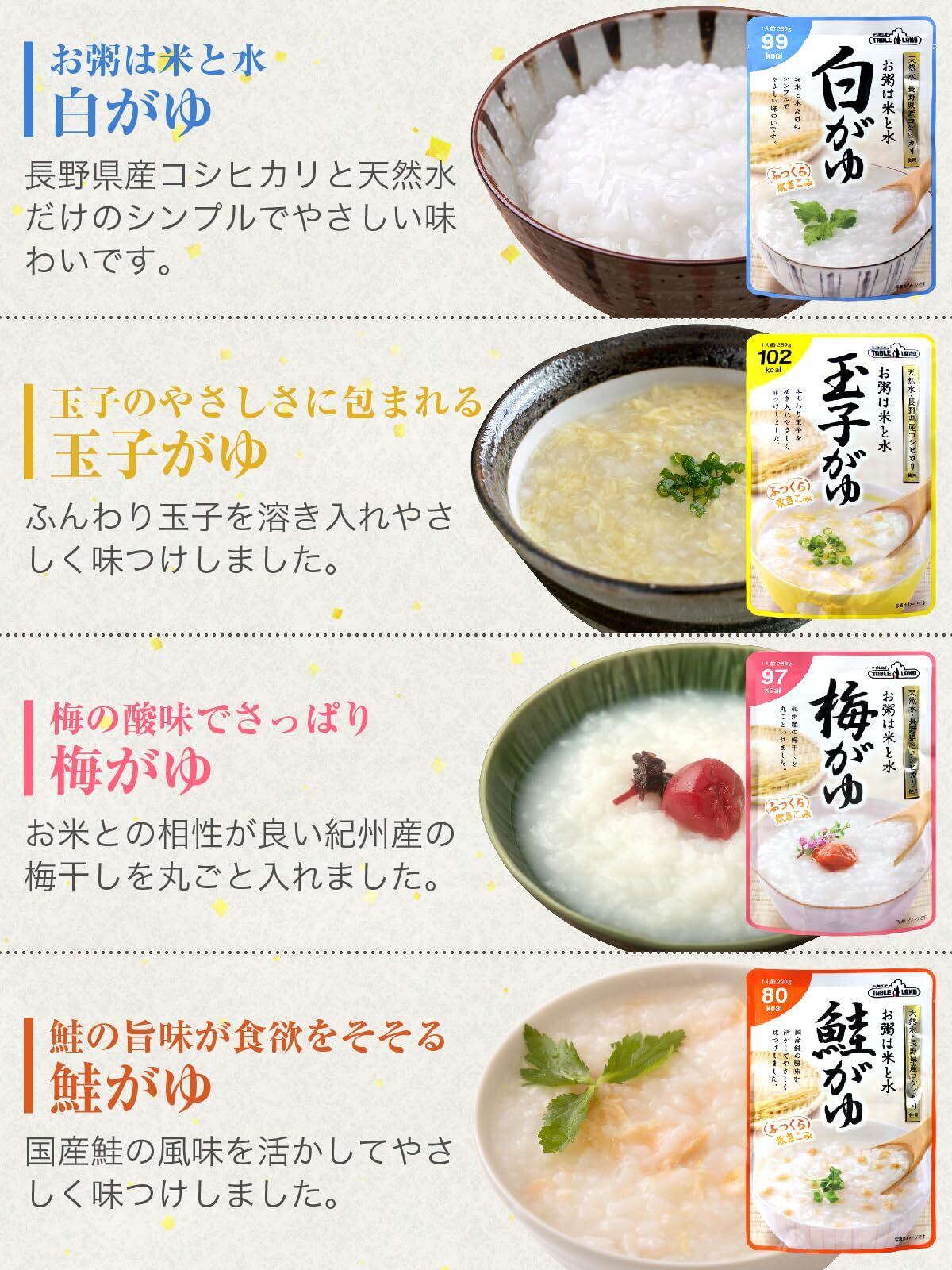 お粥 雑炊 12種類 セット レトルト 常温 テーブルランド 味付き 国産 コシヒカリ 長野県 ご飯 1人前 低カロリー 温めずにそのままでもお召し上がりいただけるタイプ