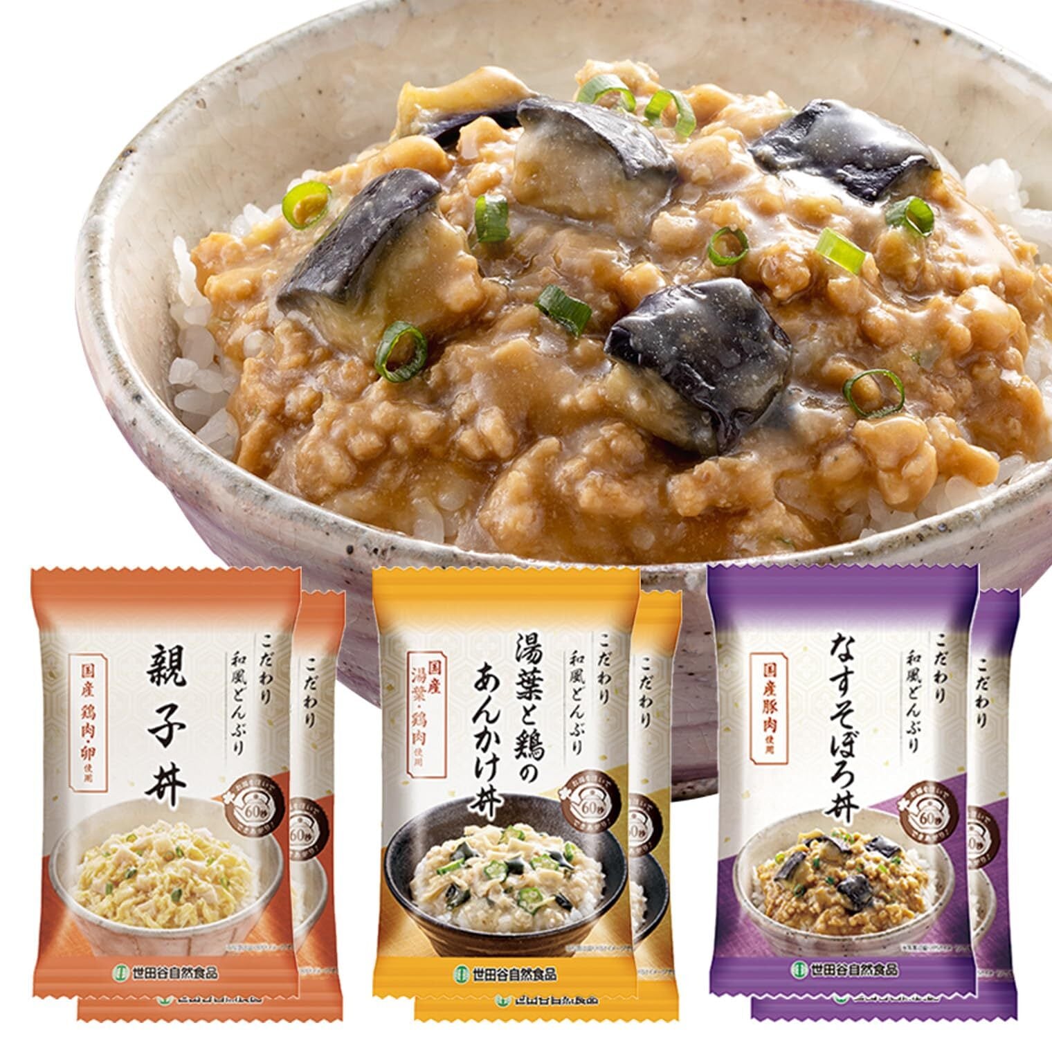 世田谷自然食品 こだわり 和風どんぶり 3種セット (親子丼 湯葉と鶏のあんかけ丼 なすのそぼろ丼バラエティ×各2食セット / 6食入) 災害用 保存食 お歳暮 フリーズドライ 固形 インスタント 即席 具だくさん 具材 野菜 健康